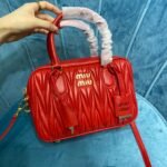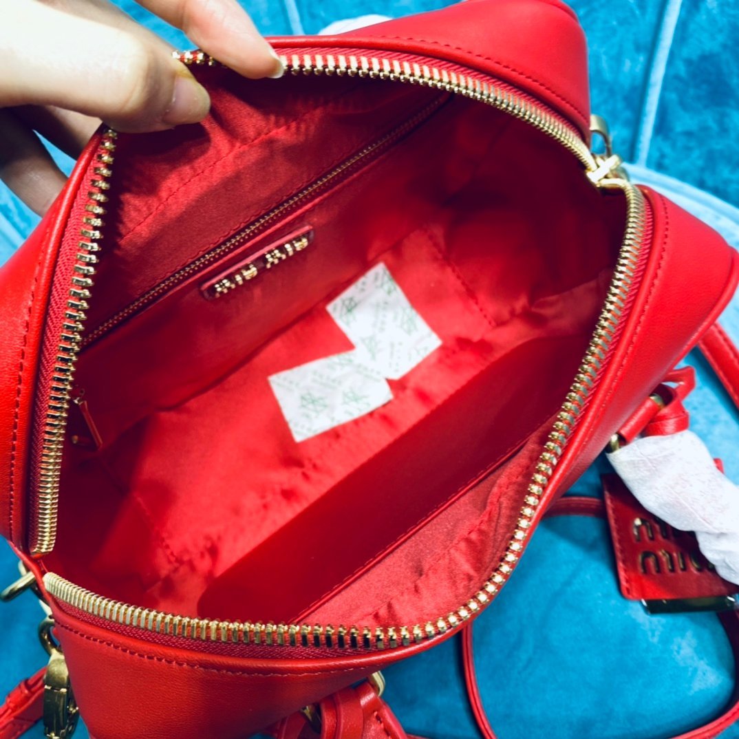 5BB124: MiuMiu new too pretty bowling handbags, using imported lambskin classic brand iconic Matelasse texture embroidery, vintage frosted hardware, retaining the playfulness that should be the sense of the bag as a whole, hard and shaped, full of personality, can be sweet or salt, capacity Can be light, the major fashion wrestlers almost manually a, the degree of fire is no less than the previous MiuWander, colorful, three sizes, medium size: 24X16X7.5CM, with the original packaging. 12500511