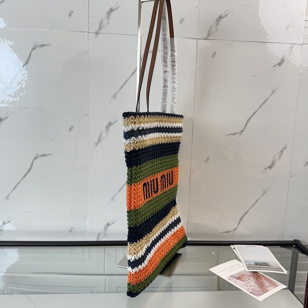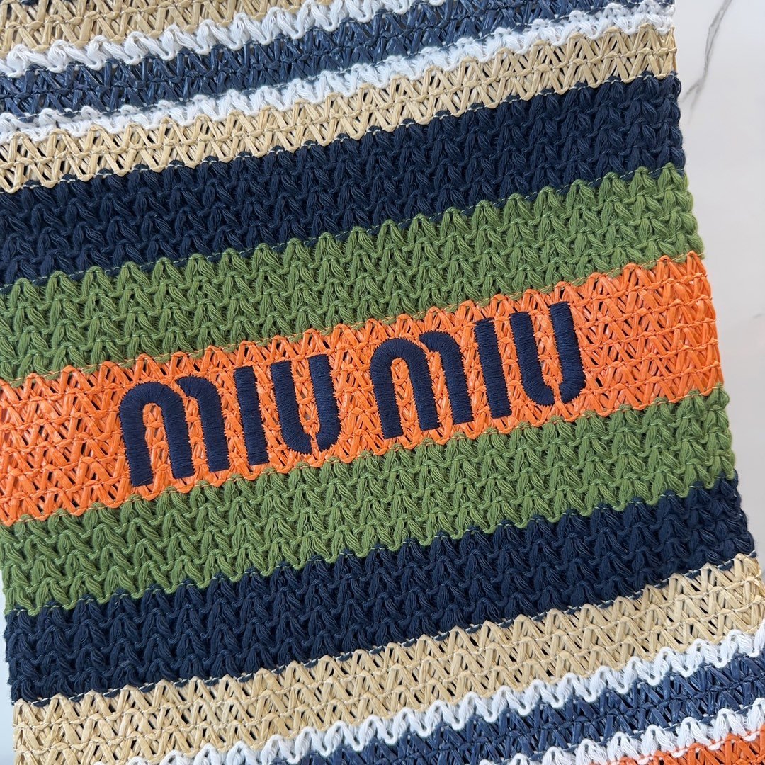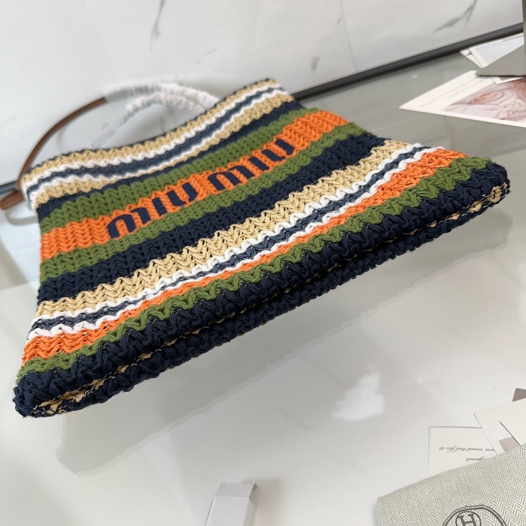 🍒M Family🍒 5BG248, Imported raffia straw quilted cotton thread knitted tote bag, this crochet tote bag is decorated with vibrant colorful patchwork patterns, the body of the bag is adorned with the iconic Miu embroidered logo, together with the vintage elements and exquisite workmanship to create an eye-catching style, cotton lining, ultra-lightweight, super large capacity, small size vertical fit higher. Work commute out travel are excellent choice, all year round, the physical object is super beautiful, back it, you are the queen of fashion, size: 30X38CM, with the original packaging. 780086