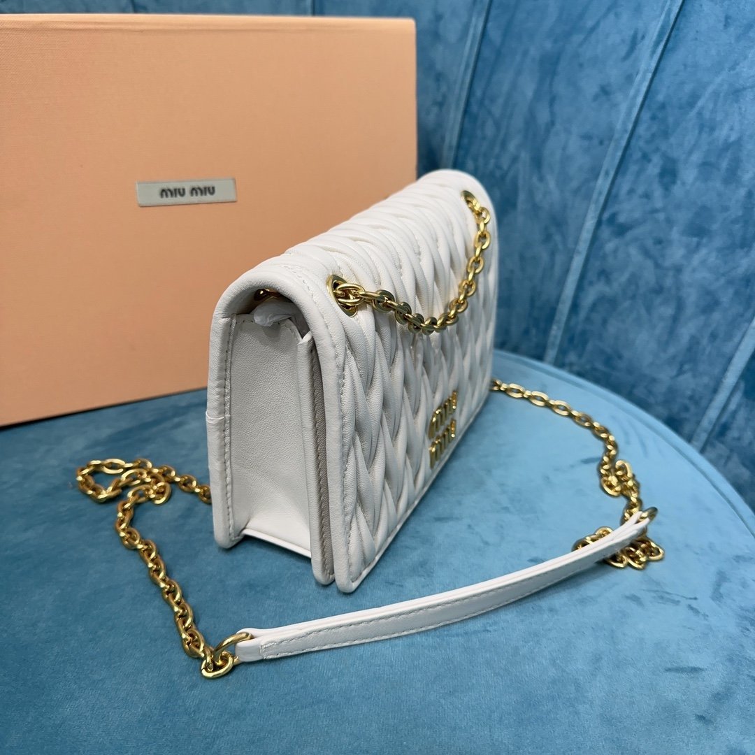 🍒M family 🍒n5BH211 new version: the new season Miu Miu crystal chain version of the accessories series of handbags, the iconic Matelasse embroidered lambskin material, the Miu family exclusive design, imitation crystal decorated with gorgeous shoulder straps highlighting the distinctive features of the body design exudes a sophisticated and elegant style Front decorated with metal Engraved logo Zipper closure Satin and soft lambskin pockets H 16.5 cm L 21 cm W 5.5 cm, (in original packaging) 1080089 $280.00