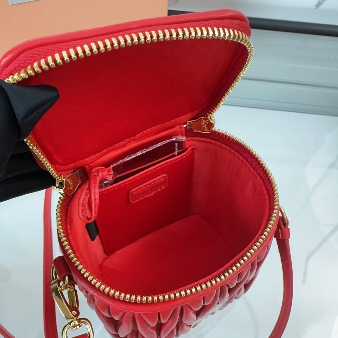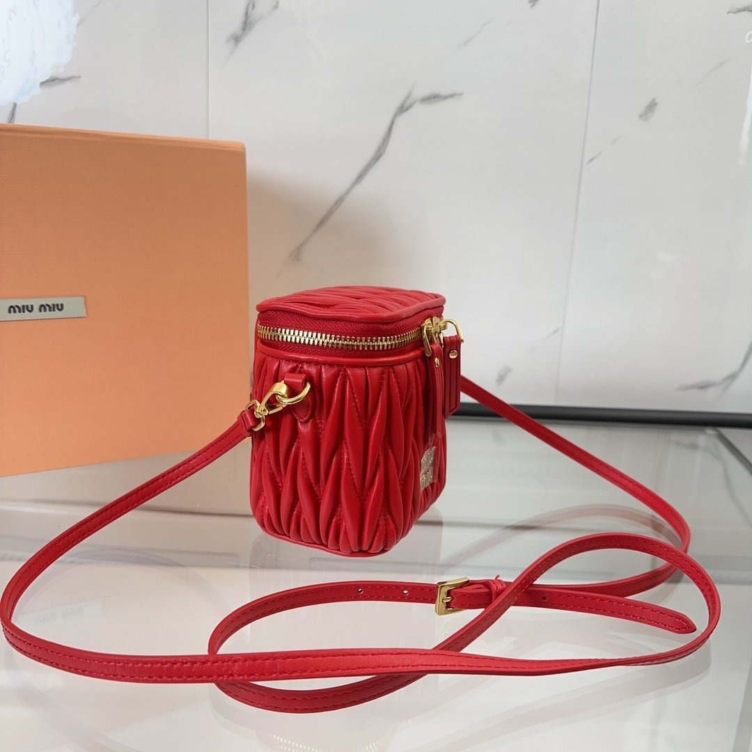 Home BAGS MIUMIU 🍒M home 🍒 5NR018 new super mini cosmetic bag, made of top quality imported lambskin, exquisite Matelasse craftsmanship, with three-dimensional texture texture, fashionable and simple shape, showing the exquisite elegance, zipper closure, metal letter logo on the front, detachable and adjustable leather long shoulder strap, cotton satin lining with mirror slots, size:10.5 X 9.5 X 7 cm, in original packaging. 880087