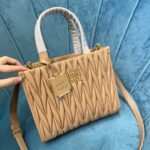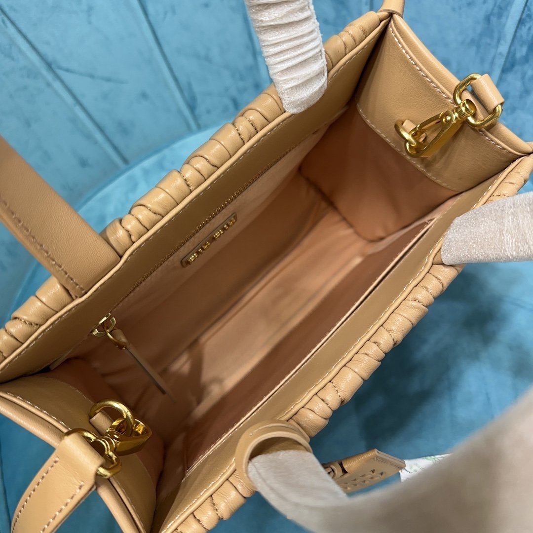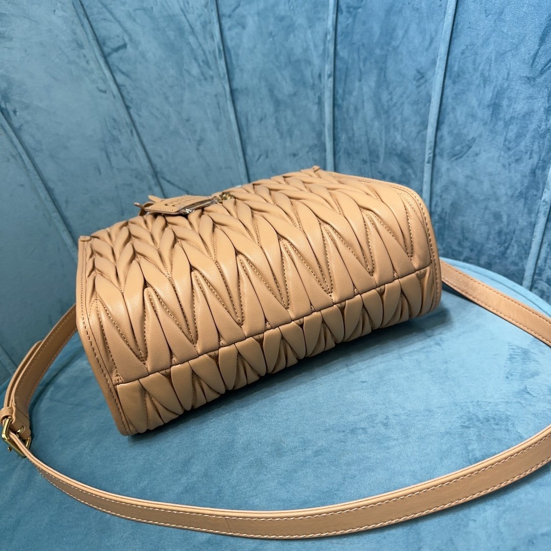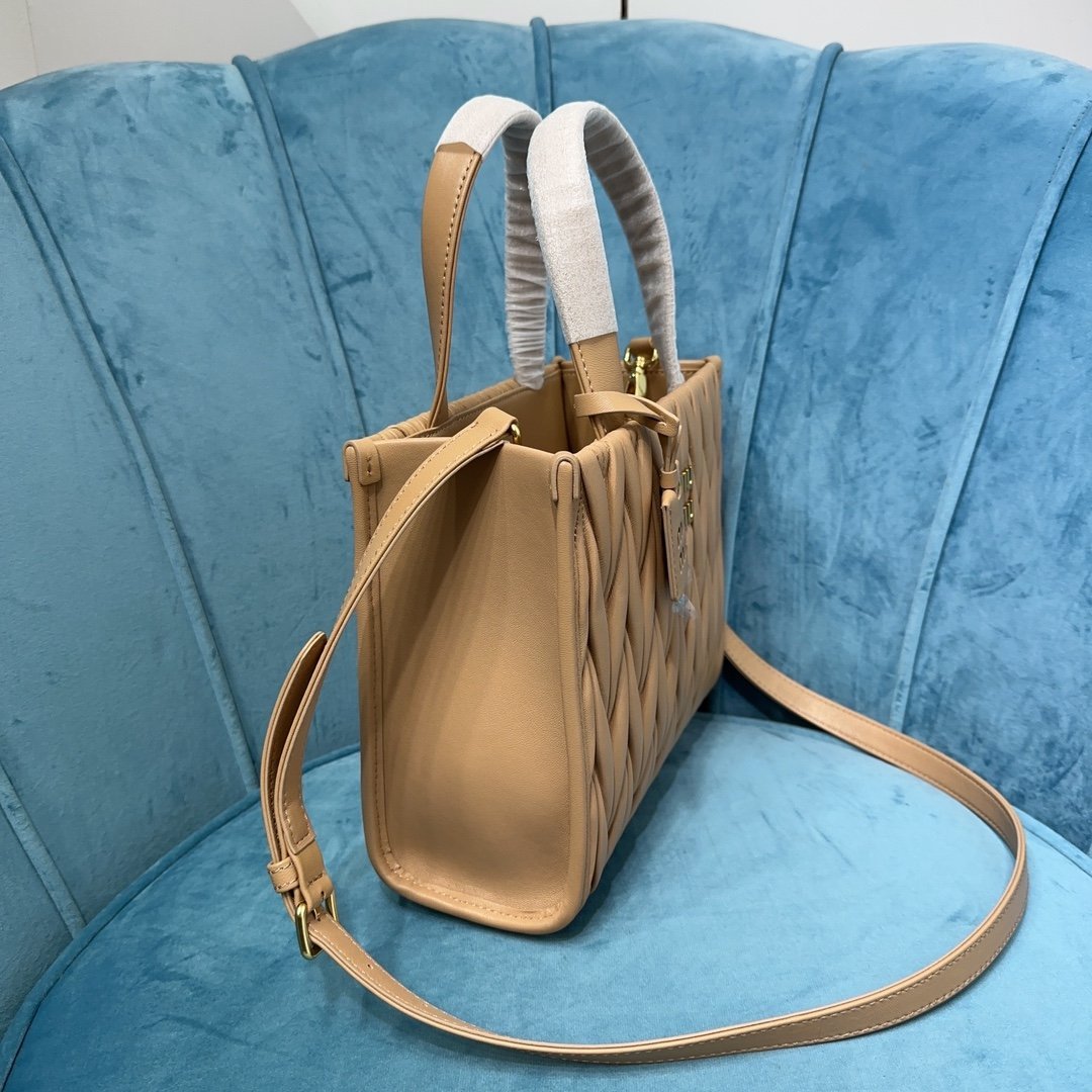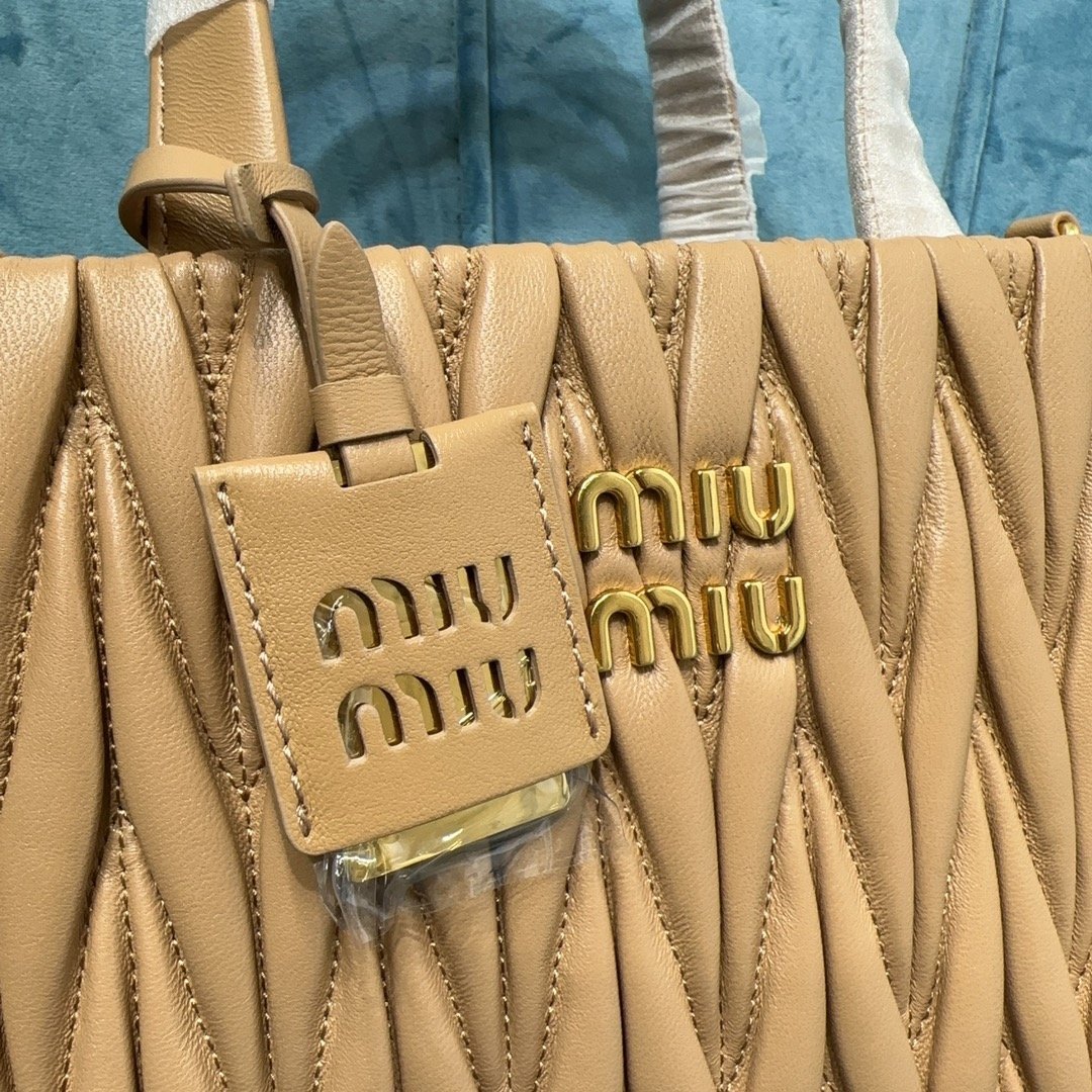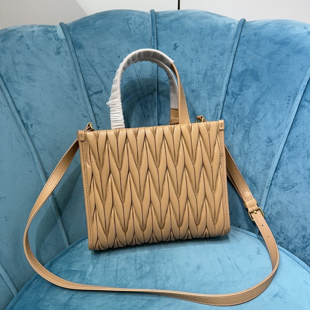 5BG263: MiuMiu new Tote handbags, using imported lambskin, gorgeous Matelasse process to re-interpret the soft sheepskin Tote vibrant and versatile urban style silhouette, giving the body of the bag texture texture of the work of the three-dimensional effect of the vintage frosted hardware, the new logo pendant. Leather handles, detachable shoulder strap and interior pockets create a functional and modern design, capacity is light, dimensions: 24X20.5X8Cm, with original packaging. 12800811