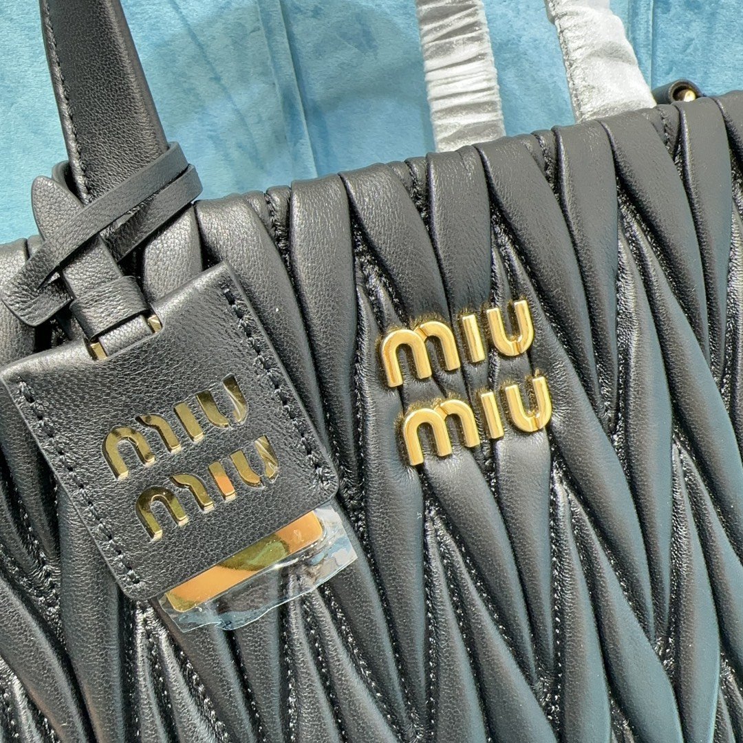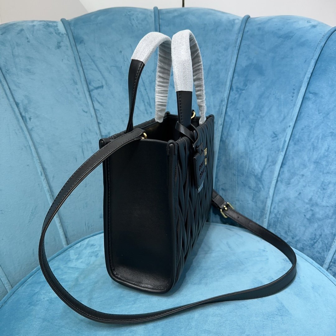 5BG263: MiuMiu new Tote handbags, using imported lambskin, gorgeous Matelasse process to re-interpret the soft sheepskin Tote vibrant and versatile urban style silhouette, giving the body of the bag texture texture of the work of the three-dimensional effect of the vintage frosted hardware, the new logo pendant. Leather handles, detachable shoulder strap and interior pockets create a functional and modern design, capacity is light, dimensions: 24X20.5X8Cm, with original packaging. 12800811