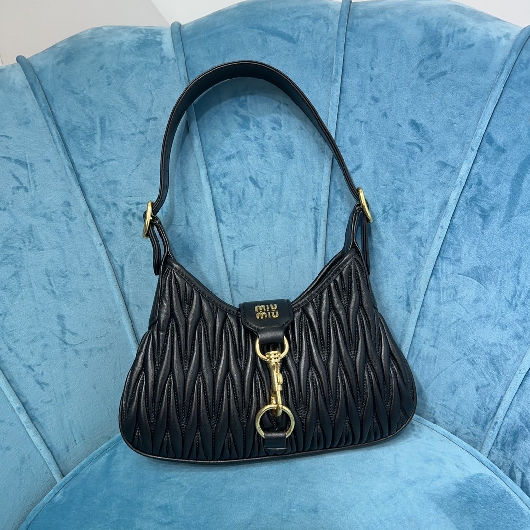 💋5BC157#🆕🆕🆕MiuMiu new hobo armpit bag, classic Matelasse lambskin, jacquard wrinkled camouflage embossed pattern, new heavy hardware to create a hardware Material and genuine same material, production process and appearance design incorporates many of MlUMlU’s most unique and iconic elements, cotton satin lining, two lined pockets, the effect of the upper body is superb, versatile and stylish 🌹 Size: 29CM long, 15CM high, 4CM wide 💕 (with the original packaging) 1080089