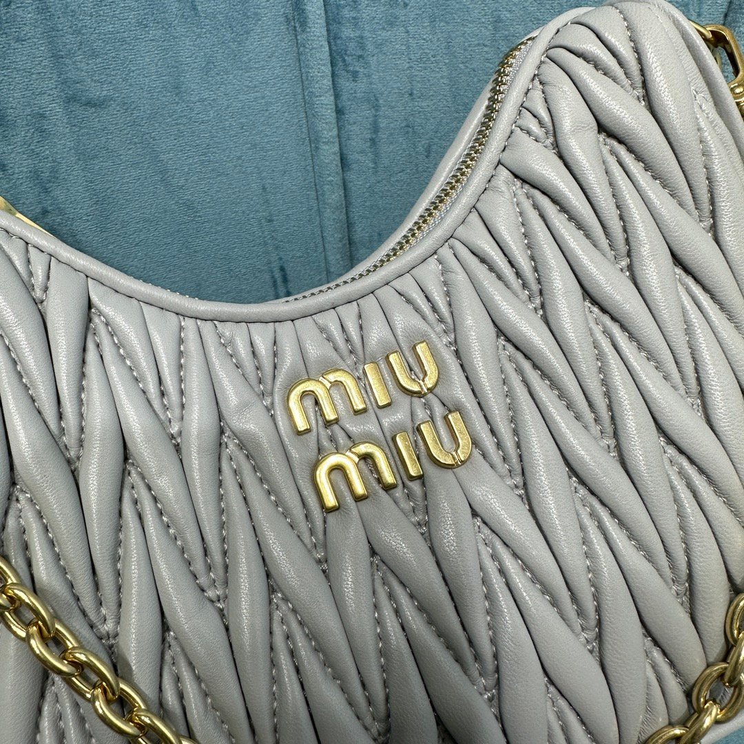 🍒M home 🍒n5BH211: new miumiu pleated chain bag! This new soft sheepskin shoulder bag picks up the exquisite Matelassé craftsmanship for a beautifully three-dimensional effect. The engraved logo is echoed in the different metal finishes of the metal fittings, emphasizing the iconic and recognizable style of the brand. Functionality and aesthetics are complemented by a detachable chain and leather shoulder strap, a Matelassé pattern, a detachable chain handle, a 105 cm detachable and adjustable leather shoulder strap, and a detachable leather cosmetic mirror case. Zipper closure, cotton satin lining! With dust bag! Size: 17 *20 *5cm. 1080089