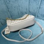 🍒M home 🍒n5BH211: new miumiu pleated chain bag! This new soft sheepskin shoulder bag picks up the exquisite Matelassé craftsmanship for a beautifully three-dimensional effect. The engraved logo is echoed in the different metal finishes of the metal fittings, emphasizing the iconic and recognizable style of the brand. Functionality and aesthetics are complemented by a detachable chain and leather shoulder strap, a Matelassé pattern, a detachable chain handle, a 105 cm detachable and adjustable leather shoulder strap, and a detachable leather cosmetic mirror case. Zipper closure, cotton satin lining! With dust bag! Size: 17 *20 *5cm. 1080089 $280.00