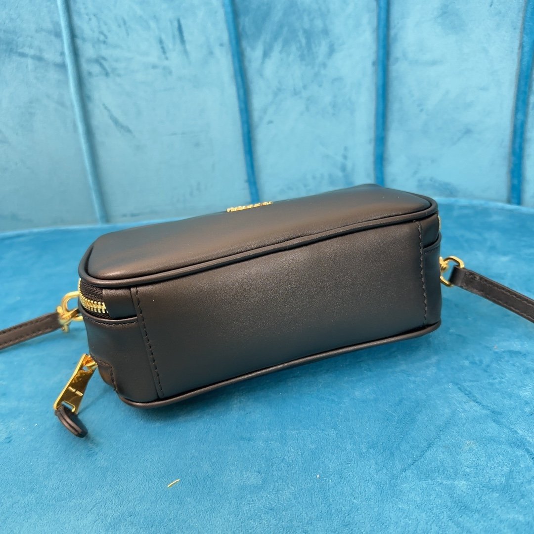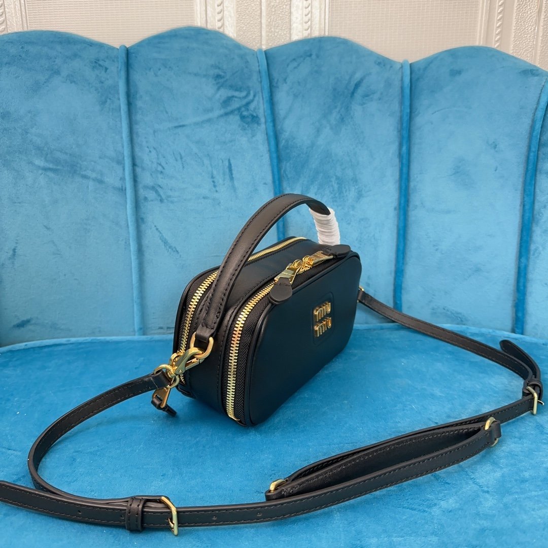Miu Miu momentum is strong The new lunchbox bag is here ~ black glossy leather shapes a strong, three-dimensional rectangular silhouette with a double zipper closure, the front of the body A gold-colored logo adds the finishing touch. The bag is equipped with a rounded curved handle, with shoulder strap design, hand-carry, hand-held and cross-body back method are full of youthful college atmosphere Sisters rushed ๐