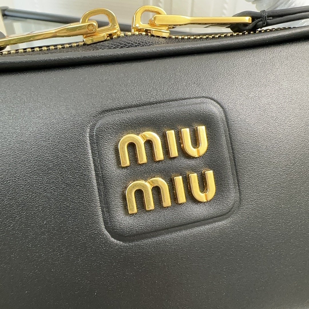 Miu Miu momentum is strong The new lunchbox bag is here ~ black glossy leather shapes a strong, three-dimensional rectangular silhouette with a double zipper closure, the front of the body A gold-colored logo adds the finishing touch. The bag is equipped with a rounded curved handle, with shoulder strap design, hand-carry, hand-held and cross-body back method are full of youthful college atmosphere Sisters rushed 🛒