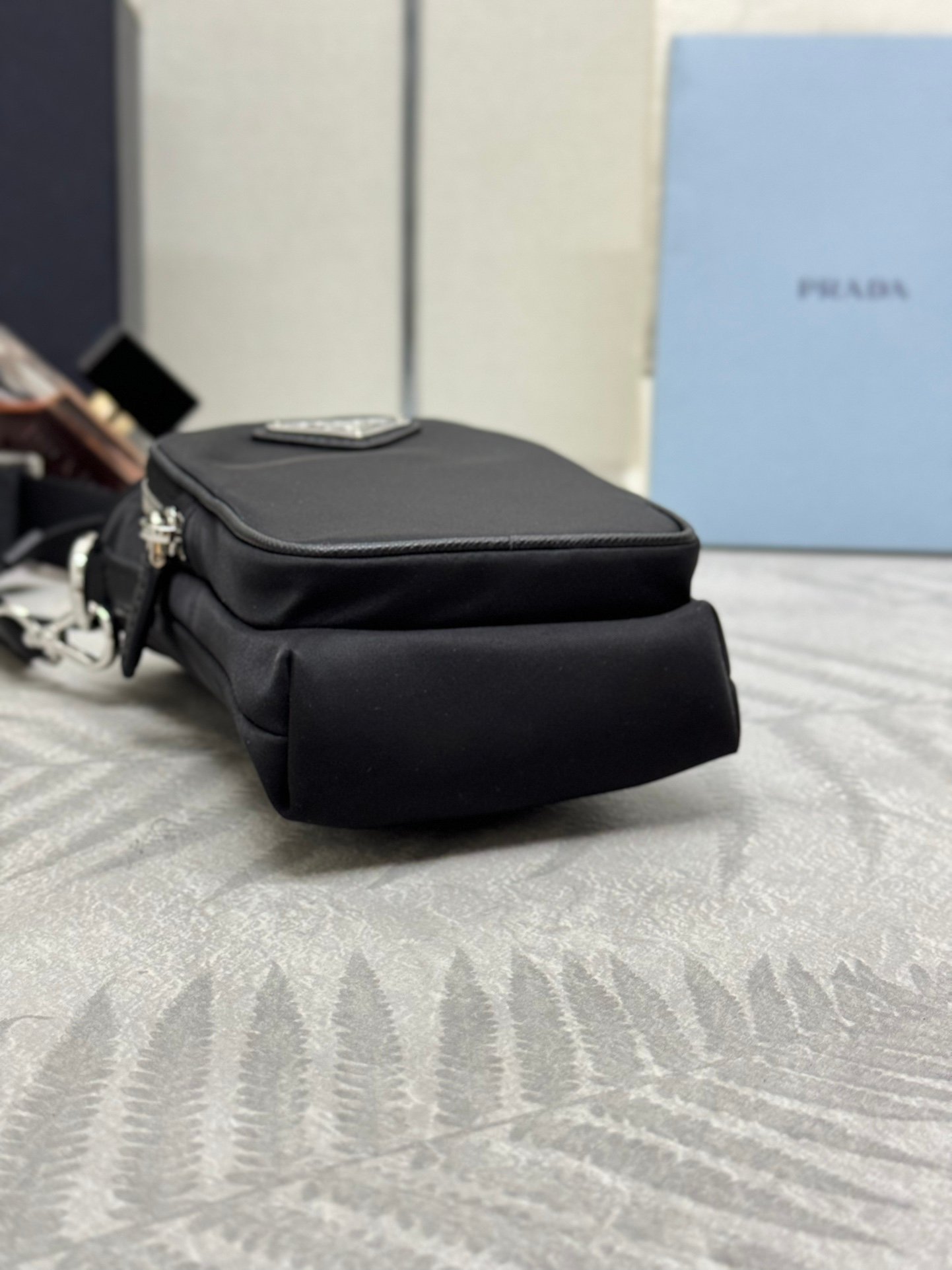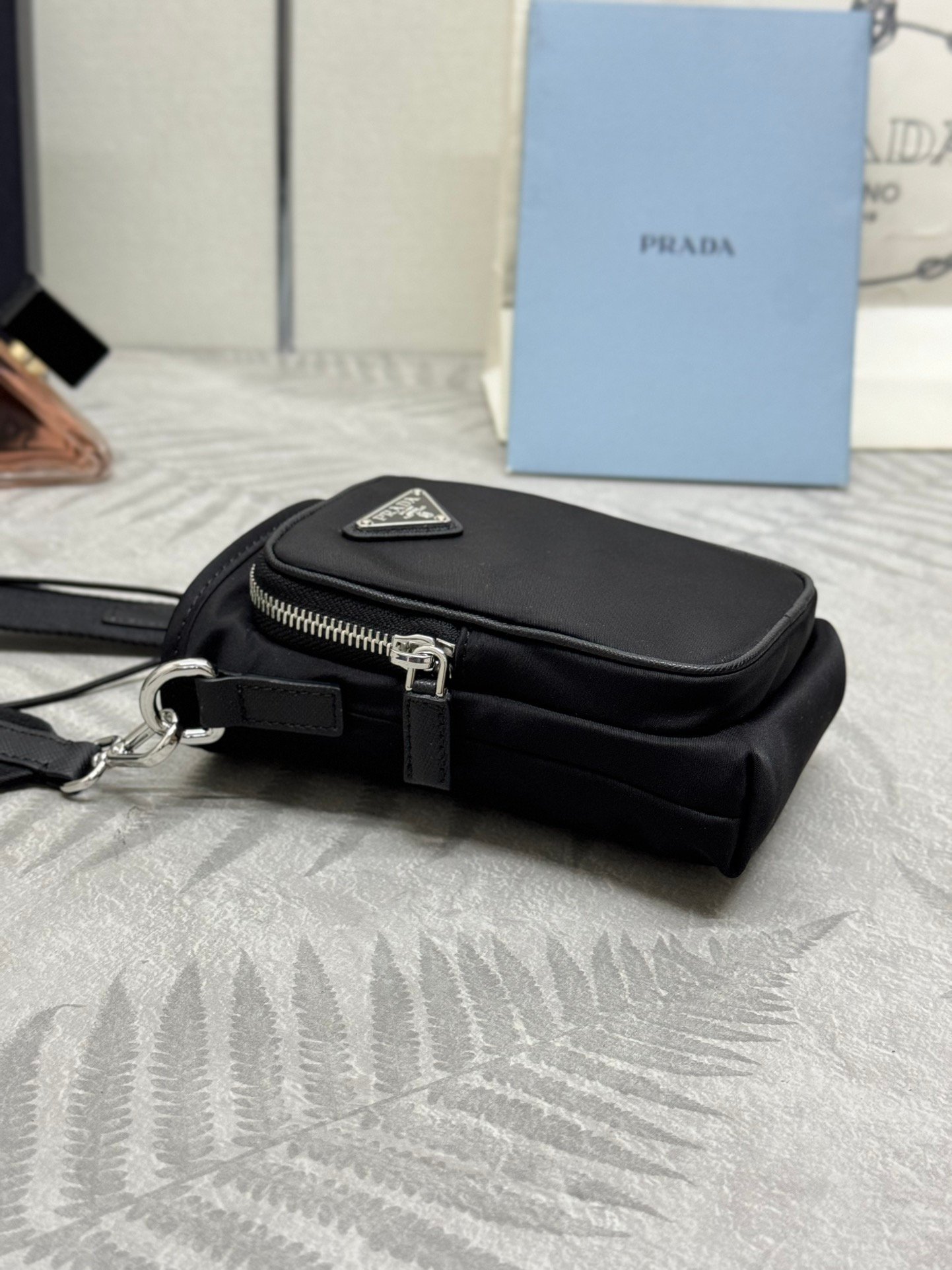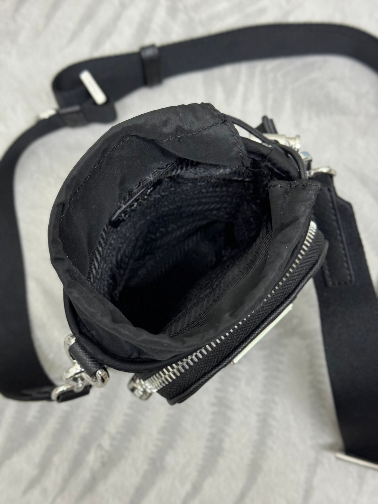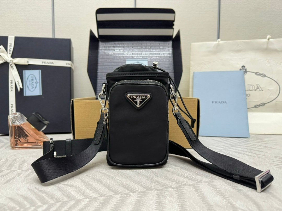 This phone case is made of innovative Re Nylon recycled nylon, showcasing a modern urban style. The adjustable nylon webbing shoulder strap and drawstring closure present chic features. The logo on the front and the pocket on the front panel make for a cool and stylish look. Get your hands on it now! ๐๐๐๐๐๐๐๐ L13xH18cm