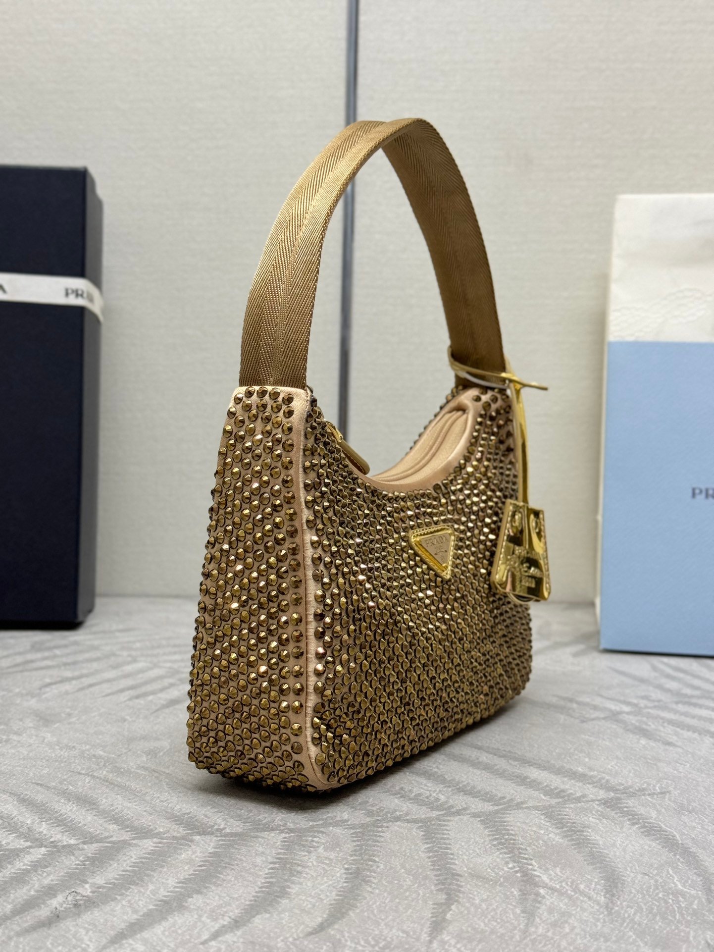 🎉 Golden Diamond Hobo2000 🎉 2023 1NE515 Flash Diamond, Gold Diamond 🎉🎉 The most beautiful and sparkling water diamond Hobo ؔ 😘😘 The imported diamond mesh has a shiny appearance, and the blinding effect under the night light is very eye-catching, with a high rate of turning back 🙈🙈 Wherever you go, you will be praised by people in various ways 😘 This sparkling diamond bag is also very easy to match with clothing, it can be both fairy and cool, suitable for any occasion, Hobo explosive elements have been Netflix / stars recognized, another permanent fire Hobo 🙊🙊 worth getting 👍 beauties 😘 L23xH13xBottom5cm