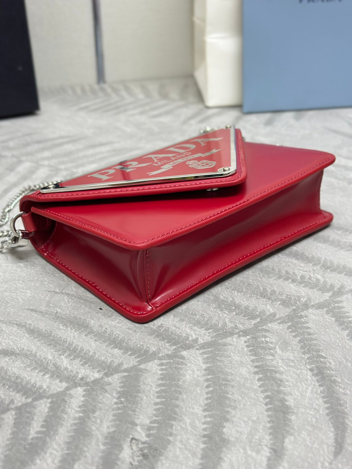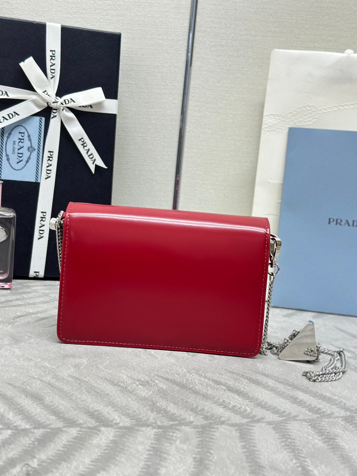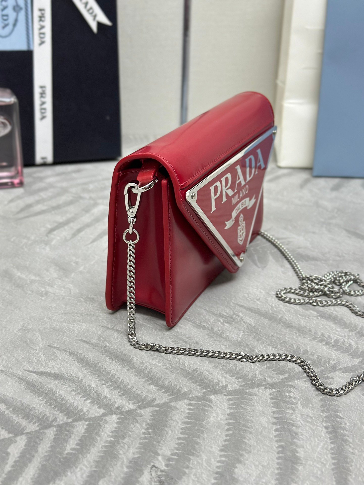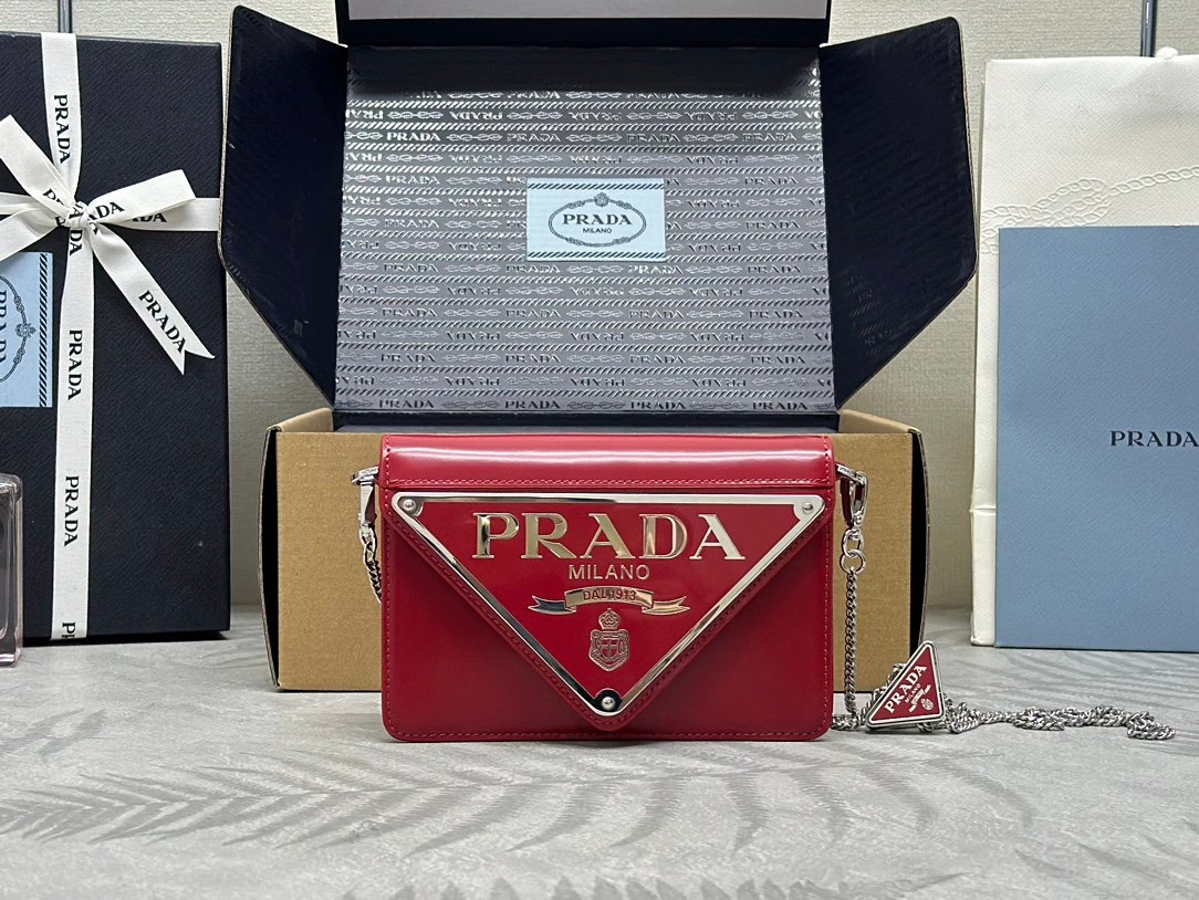 ๐Large triangle flap ๐1BH189๐2021 new large triangle logo originally decorated in Mario design, especially show the bag trend style, with adjustable and removable chain shoulder strap (110 long), simple atmosphere ๐ give the bag body a touch of distinctive modern style. It’s beautiful ๐ The upper body effect is cool and generous ๐๐ป๐๐ป Hurry up and get it ๐๐ Size: Length 17x Height 9.5x Bottom 3.5cm