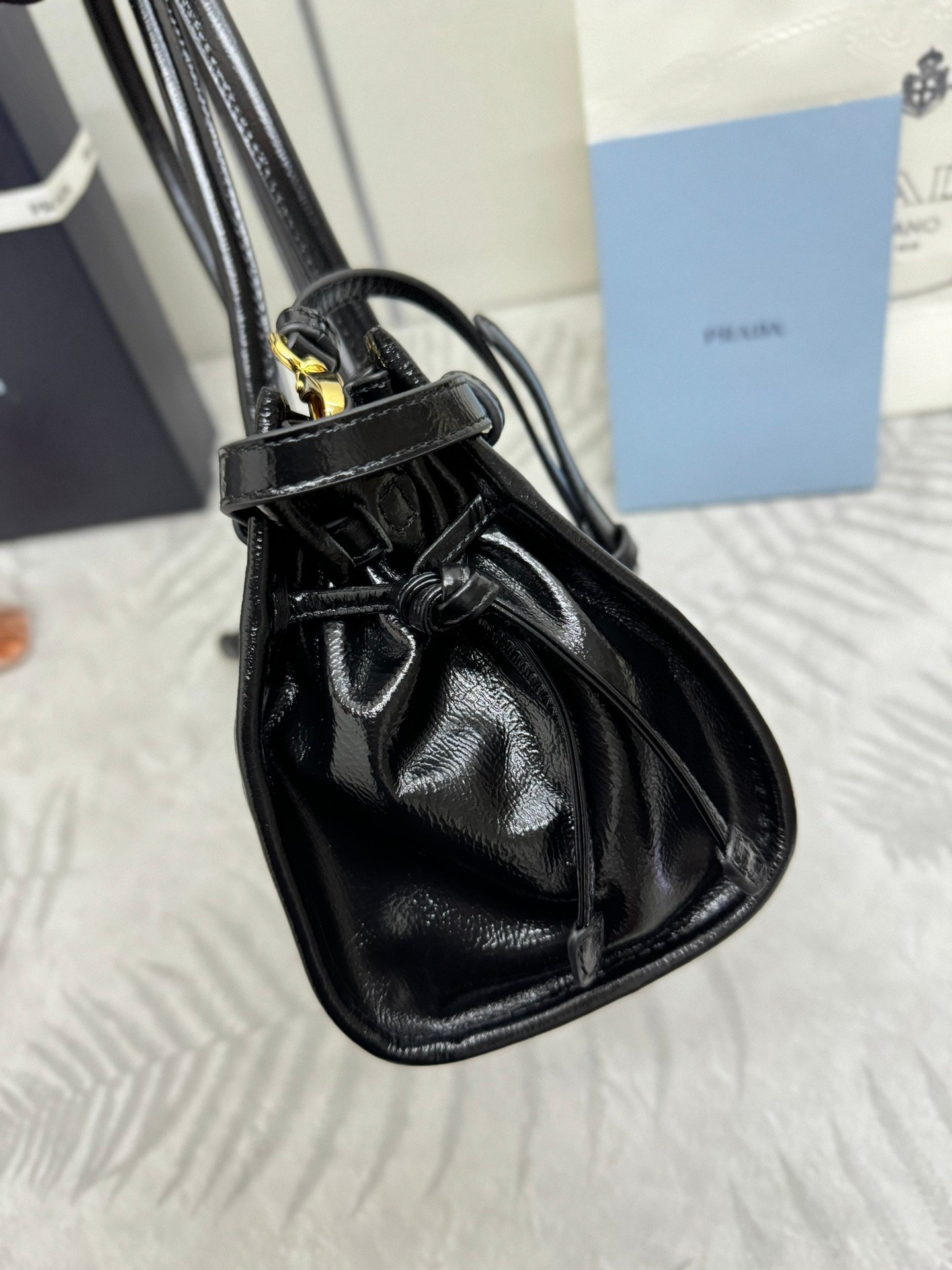 ๐Soft Lux Wrinkled patent leather 1BA426 small ๐๐ This portable crossbody bag is made of imported oil wax leather, with a shiny color that exudes a classical atmosphere. It is equipped with a detachable and adjustable long shoulder strap for easy matching in different occasions. The capacity space is very large, and it is huge and easy to use ๐๏ผ It is definitely a must-have item for people in the fashion industry. Hurry up and bring this retro style handbag home! Size: L32xH15.5xB12cm ๐๐๐๐๐๐.