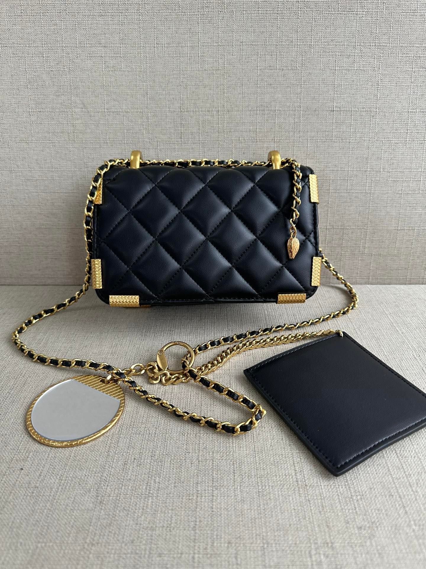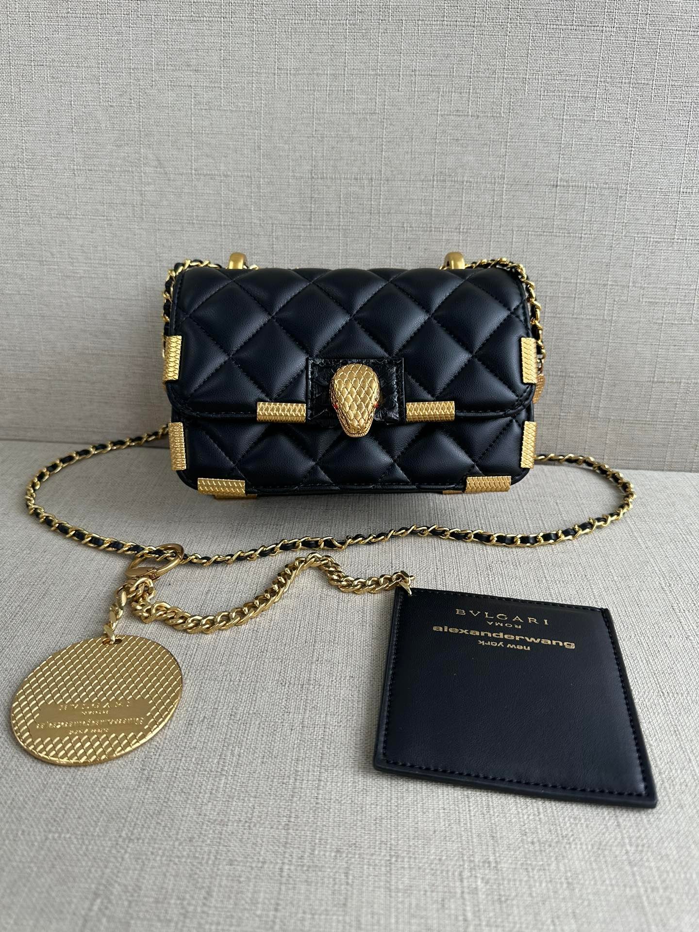 🐭alexanderwang Alexander. A collaboration between King and Bulgari! 100% authentic! ⚠️100% fully imported animal skins! The leather is soft and comfortable! The newest model, shoulder bag, crossbody bag! Iconic snake head logo! Chain ⛓️ can be single or double! Can be single shoulder can be crossbody! Also comes with a beautiful brass mirror 🪞 pendant! Stitch by stitch craftsmanship lets you differentiate between F goods from small workshops! Quality details are perfect! Size: L19*H13*W7