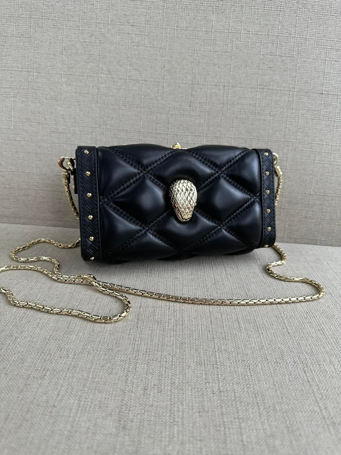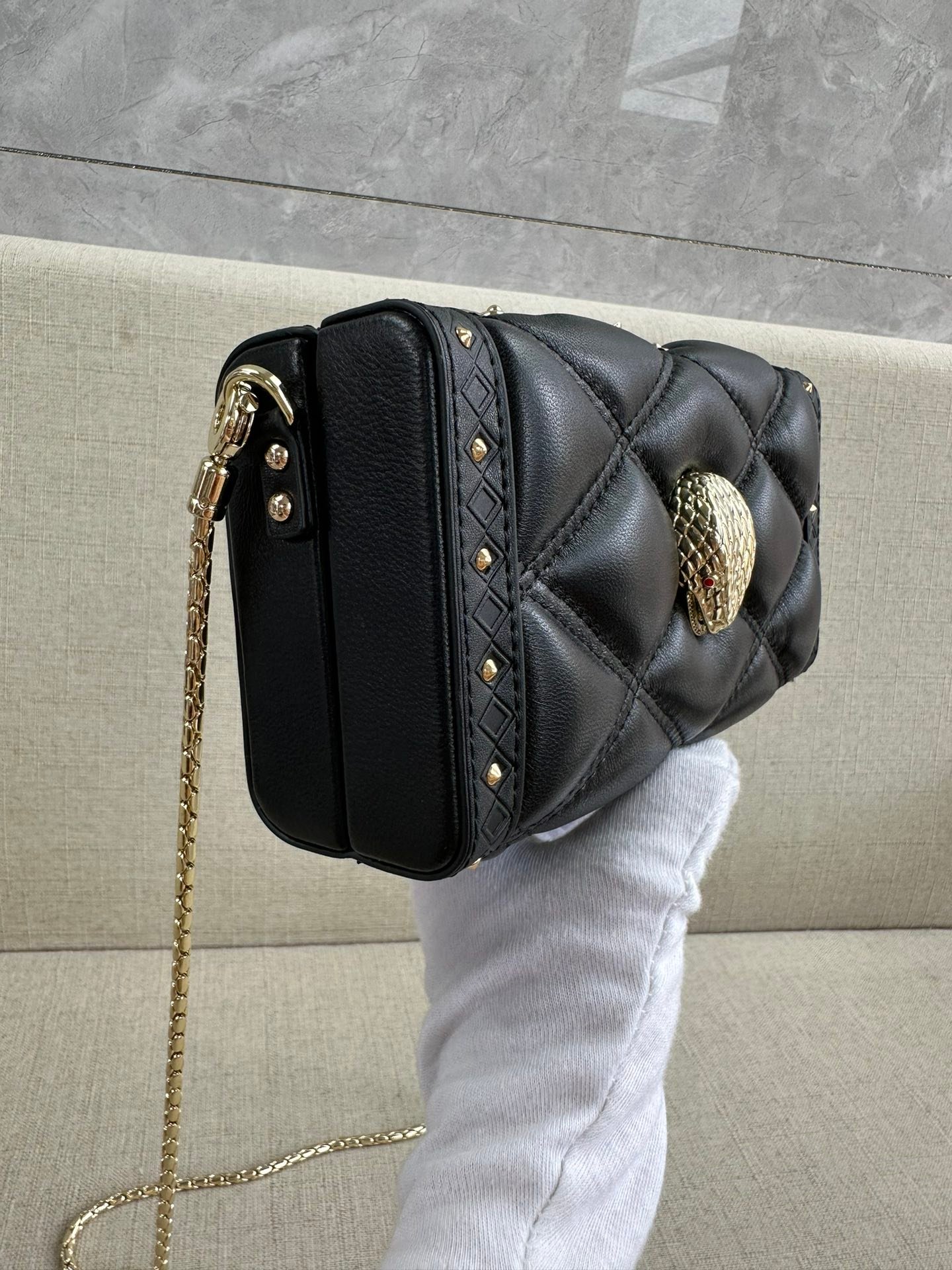 Pure original 🐭🐭🐭🐭🐭 Maharajah x Bvlgari Snakehead Full Leather Shoulder Bag, the chain shoulder strap is also a special chain for Bvlgari’s classic Snakehead bag, very durable. OEM production, packaging only dust bag Size: 28×19×9