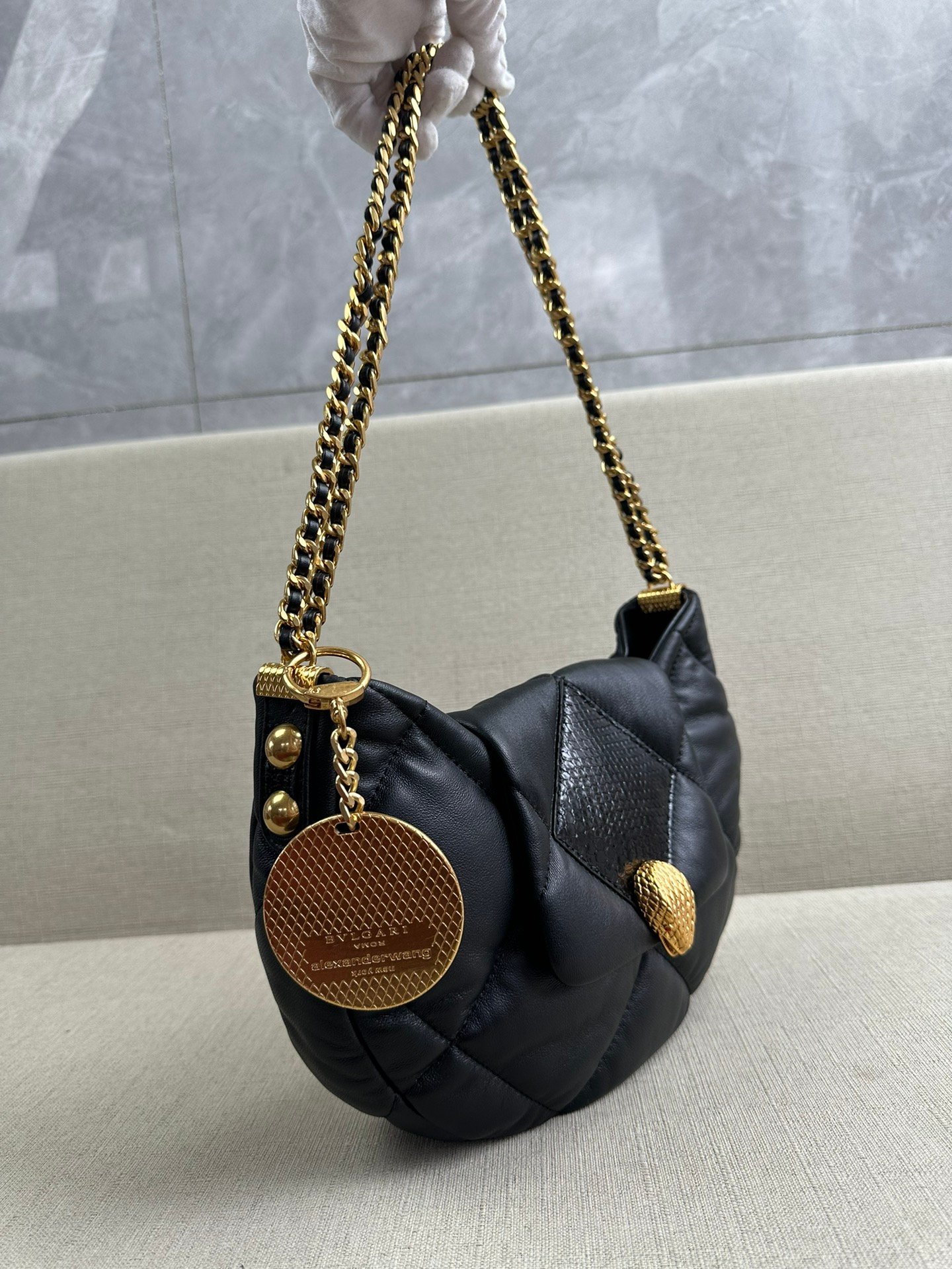 🐭alexanderwang Alexander. King and Bulgari cooperation models! 100% authentic! The latest models crossbody bag shoulder bag chain bag! 100% full imported animal leather! Lifelike snake head LOGO! Chain ⛓️ can be single or double! Can shoulder can crossbody! Carrying items can be put down! With a dust bag, it’s awesome! The counter 50,000 ➕! Size: L28*H19*W6