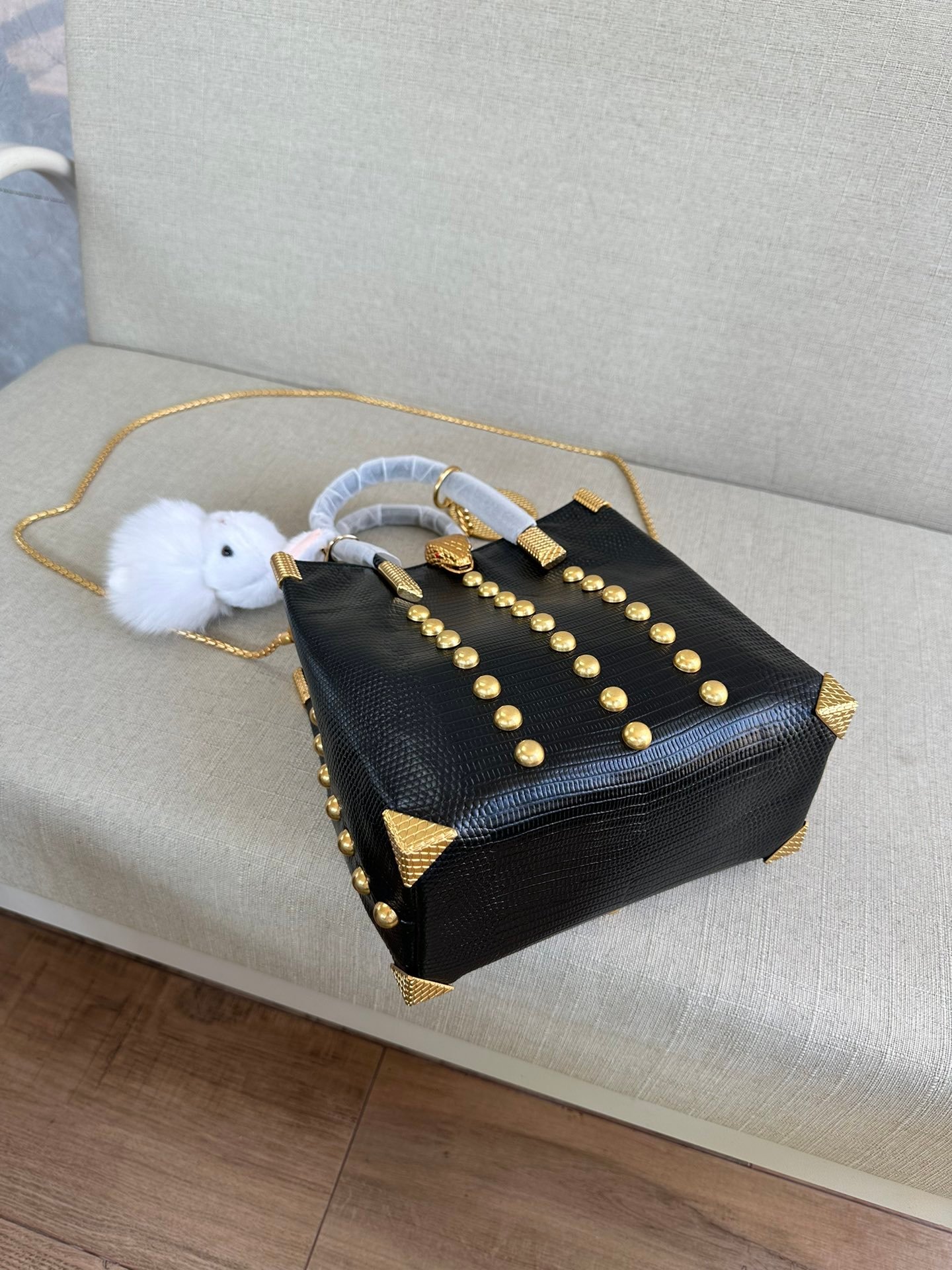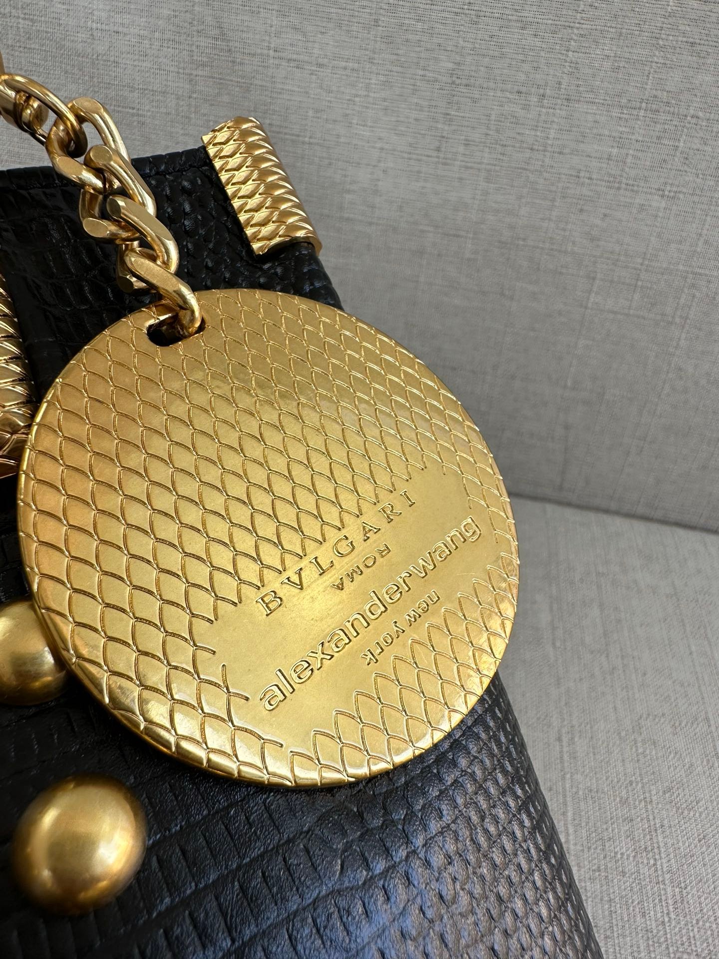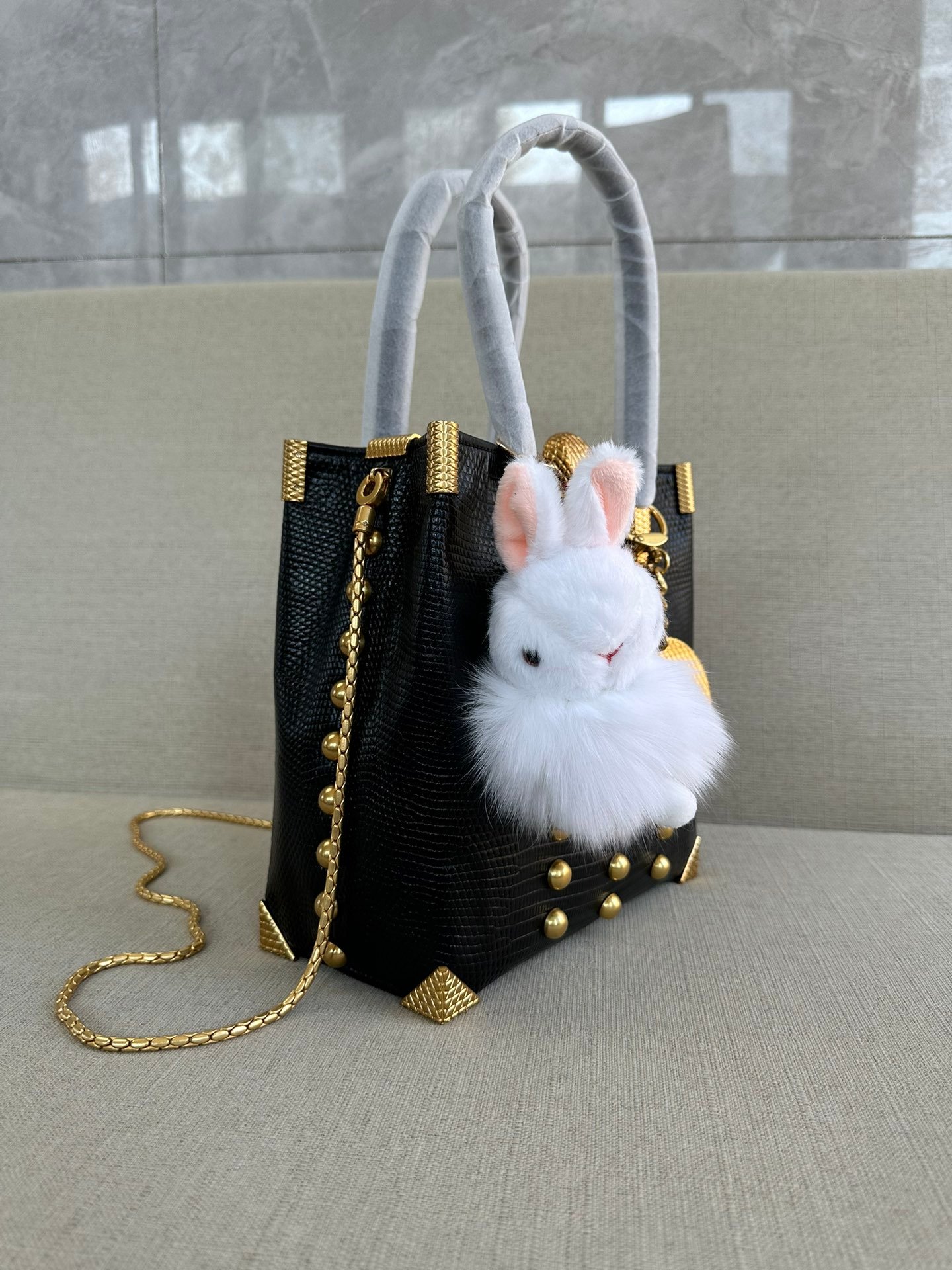 Home BAGS BVLGARI 🐭alexanderwang Alexander. King and Bulgari’s collaboration model! 100% authentic! ⚠️100% full imported lizard skin! All full leather inside, handbag crossbody bag shoulder bag ! Iconic snake head logo! Woven sheepskin handles and bottom hardware corners! With a movable shoulder strap! Can be handheld, shoulder, crossbody, ⚠️ with a rabbit and bronze mirror pendant decoration! Very beautiful! The craftsmanship of each stitch allows you to distinguish F goods from small workshops! Quality details are perfect! Size: bottom length 21 * height 22 * width 10
