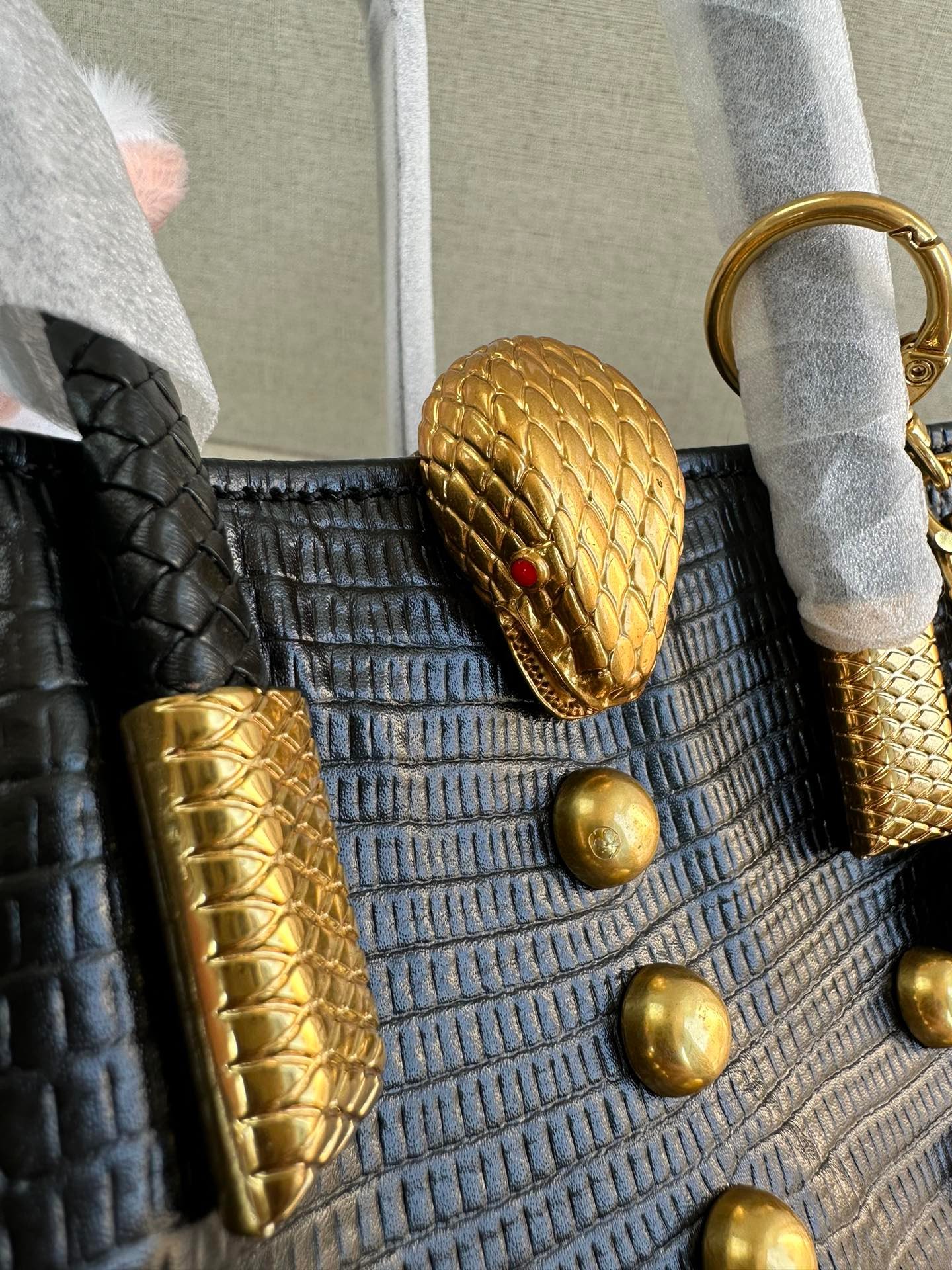 🐭alexanderwang Alexander. King and Bulgari’s collaboration model! 100% authentic! ⚠️100% full imported lizard skin! All full leather inside, handbag crossbody bag shoulder bag ! Iconic snake head logo! Woven sheepskin handles and bottom hardware corners! With a movable shoulder strap! Can be handheld, shoulder, crossbody, ⚠️ with a rabbit and bronze mirror pendant decoration! Very beautiful! The craftsmanship of each stitch allows you to distinguish F goods from small workshops! Quality details are perfect! Size: bottom length 21 * height 22 * width 10