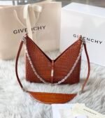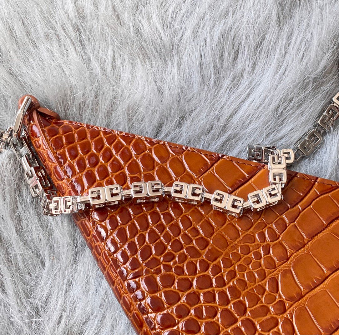 📢🇫🇷 French Pin G Home Spring/Summer 2022 New V-Shape Cut Out Handbags French Original Crocodile Leather Leather With Cast Copper 4G Hardware Chain