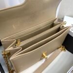 16 Satin Cow Leather Chain Bagn9 X 6 X 3 inches (23 X 16 X 6.5 cm)nCow LeathernSheep Leather LiningnCrossbody and ShouldernTwist Lock ClosurenInterior Flat Pocket n2 Interior CompartmentsnChain with Shoulder Strap PaddingLength: 20 inches (50 cm)nNo. 194023BEY.38NOn900 $250.00