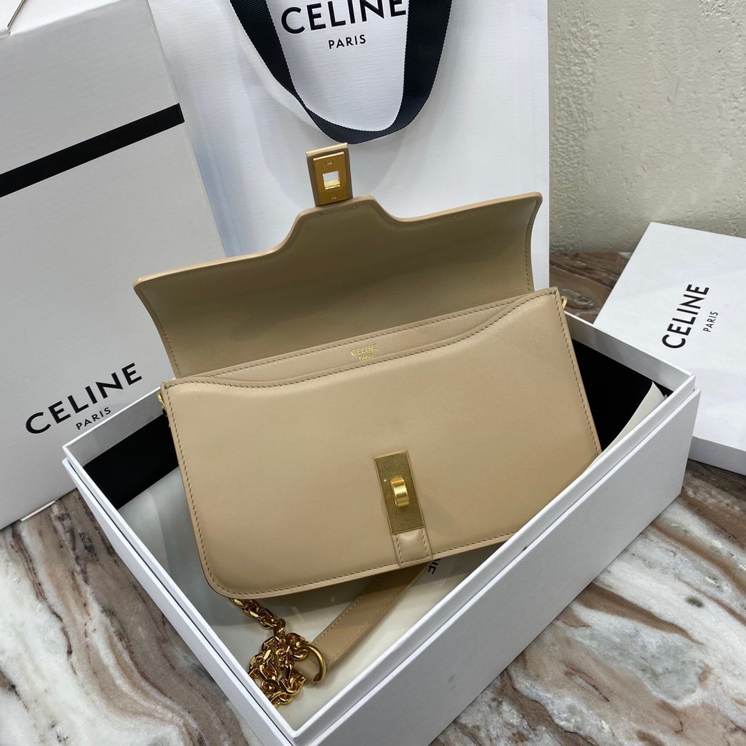 Home BAGS CELINE 16 Satin Cow Leather Chain Bagn9 X 6 X 3 inches (23 X 16 X 6.5 cm)nCow LeathernSheep Leather LiningnCrossbody and ShouldernTwist Lock ClosurenInterior Flat Pocket n2 Interior CompartmentsnChain with Shoulder Strap PaddingLength 20 inches (50 cm)nNumber: 194023BEY.38n900