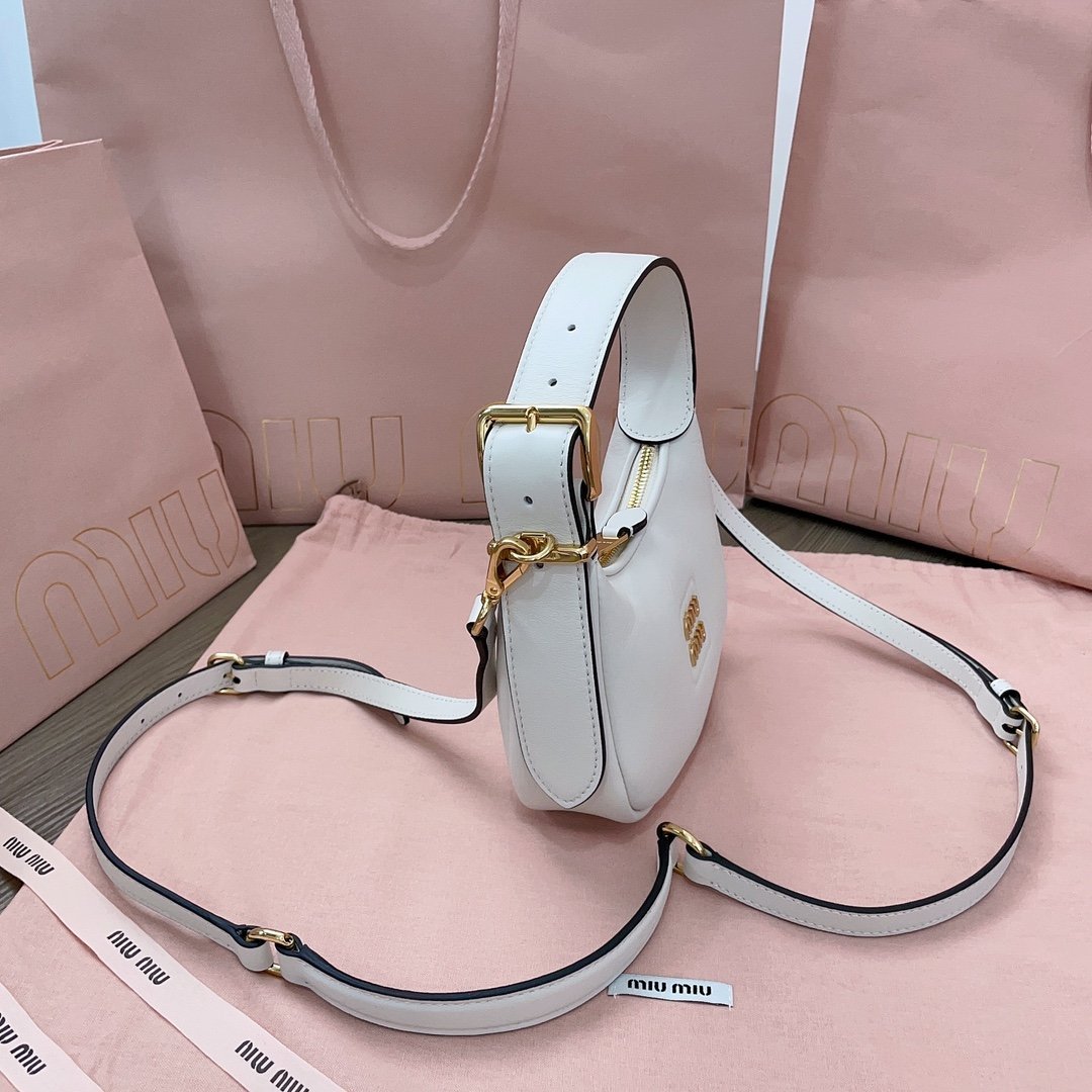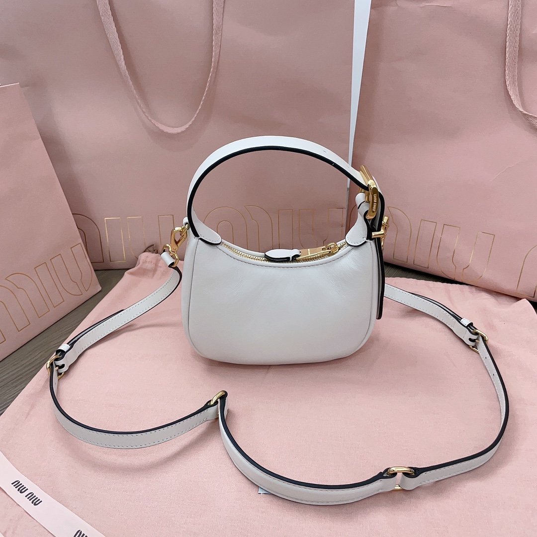 5BP084, Miu family show models hobo bag, the official website to promote the main, this year's absolute explosion 🔥 style, the use of top imported calfskin, fashion dragonfly line design, the body of the bag is exquisite three-dimensional and shaped, the style of a hundred variations, adaptability is very high, how to match the daily travel are good-looking, the front of the iconic metal logo label, removable and adjustable leather shoulder straps, cotton satin lining, many celebrities with the same models, size 17X15.5X5.5Cm, with original packaging