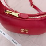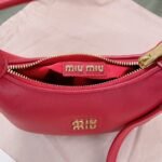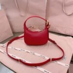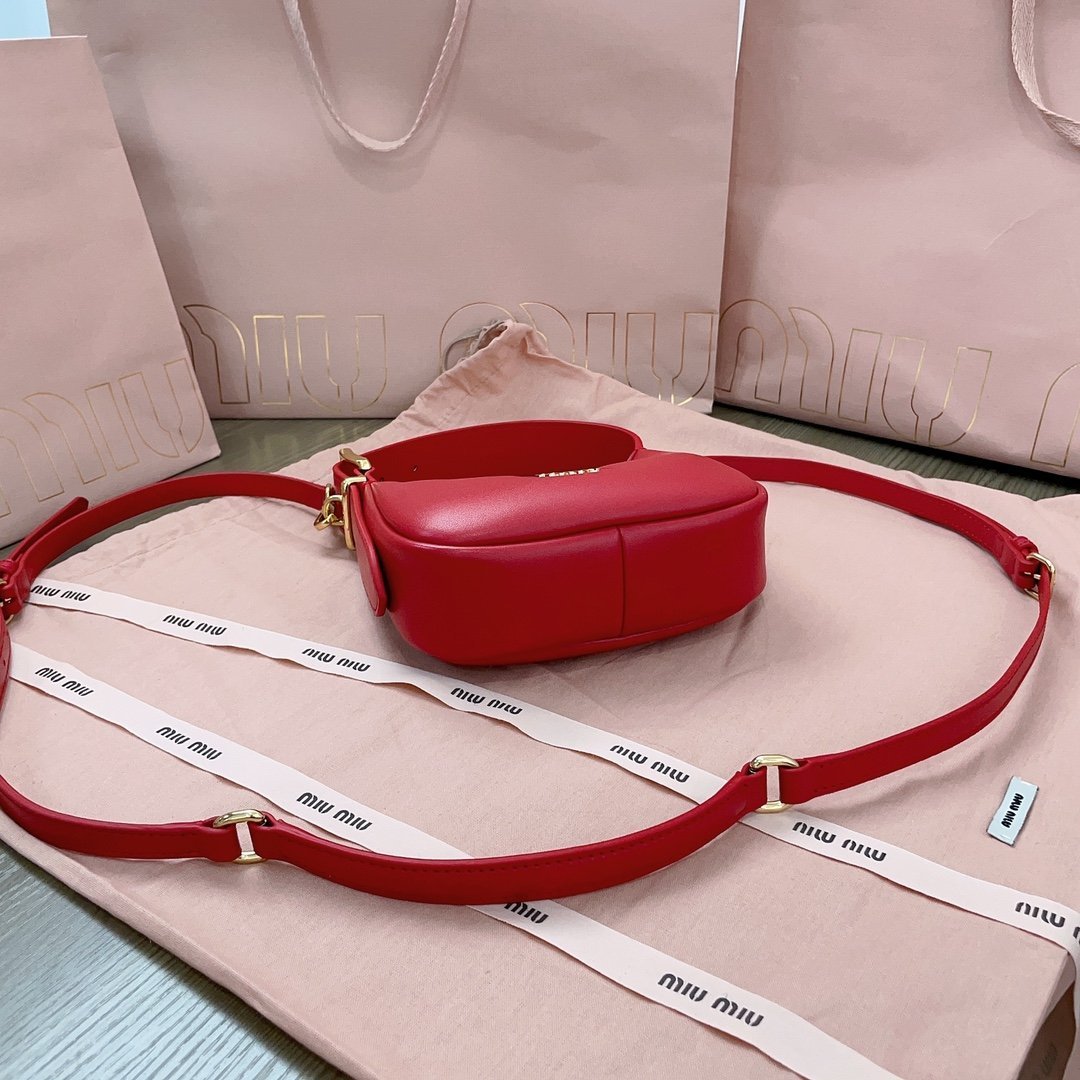5BC161, Miu family show models hobo bag, the official website to promote the main, this year's absolute explosion 🔥 style, the use of top imported calfskin, fashion dragonfly line design, the body of the bag is exquisite three-dimensional shape, the style of a hundred variations, adaptability is very high, how to take a good look at the daily travel, the front of the iconic metal logo label, removable and adjustable leather long shoulder straps, cotton satin lining, many celebrities with the same red models, size 20X17X6Cm, with original packaging $280.00