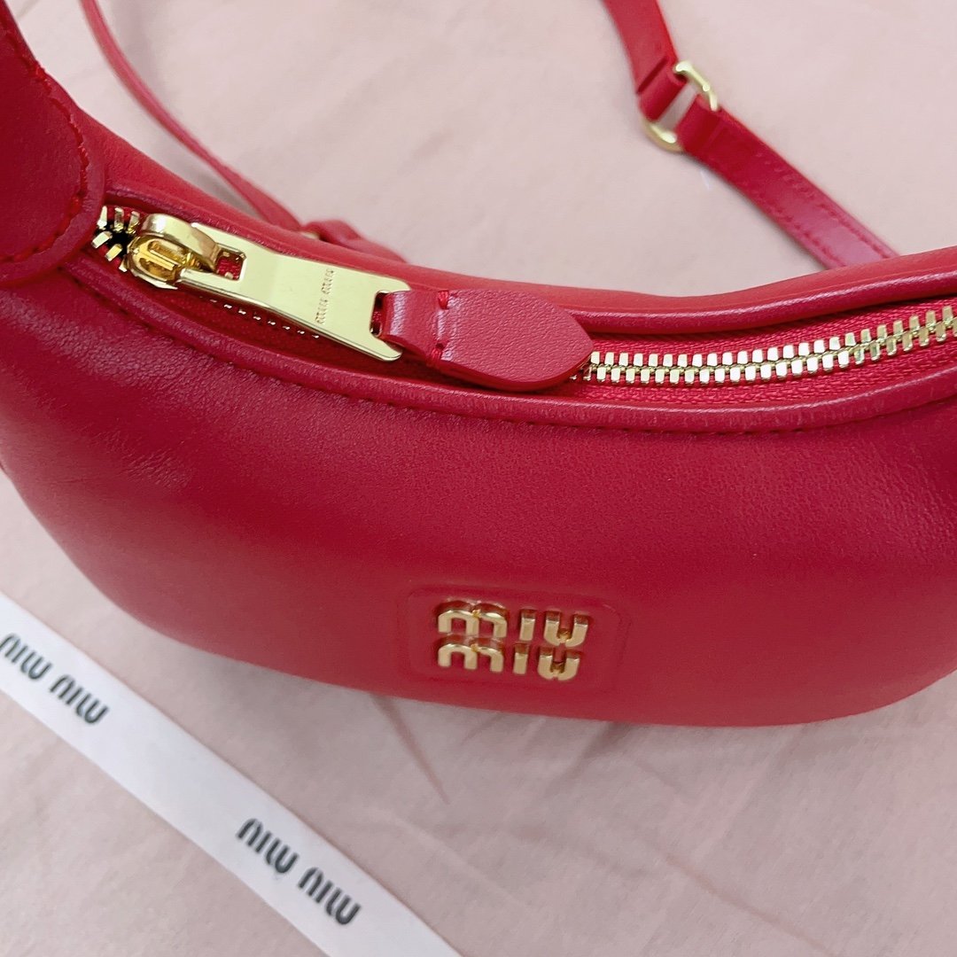 5BC161, Miu family show models hobo bag, the official website to promote the main, this year's absolute explosion 🔥 style, the use of top imported calfskin, fashion dragonfly line design, the body of the bag is exquisite three-dimensional shape, the style of a hundred variations, adaptability is very high, how to take a good look at the daily travel, the front of the iconic metal logo label, removable and adjustable leather long shoulder straps, cotton satin lining, many celebrities with the same red models, size 20X17X6Cm, with original packaging