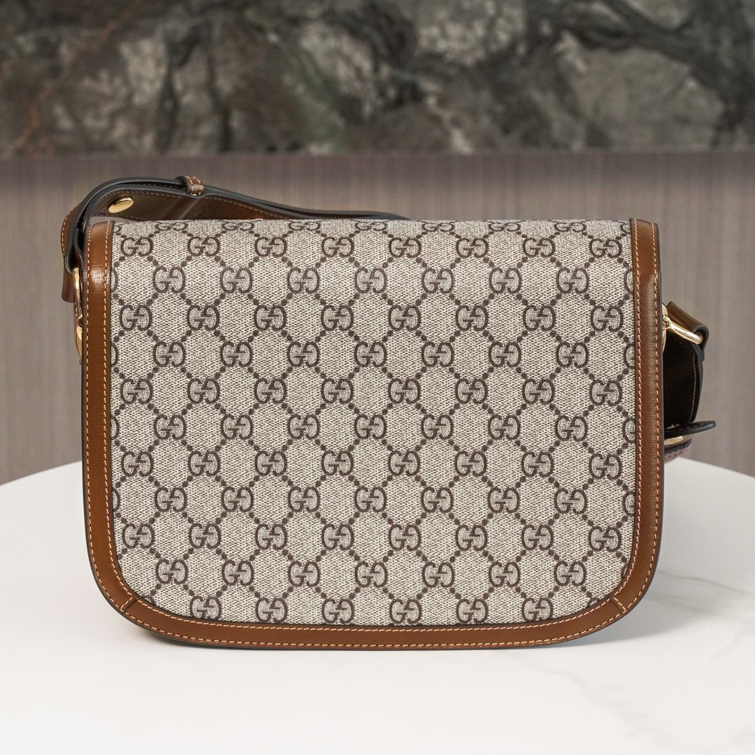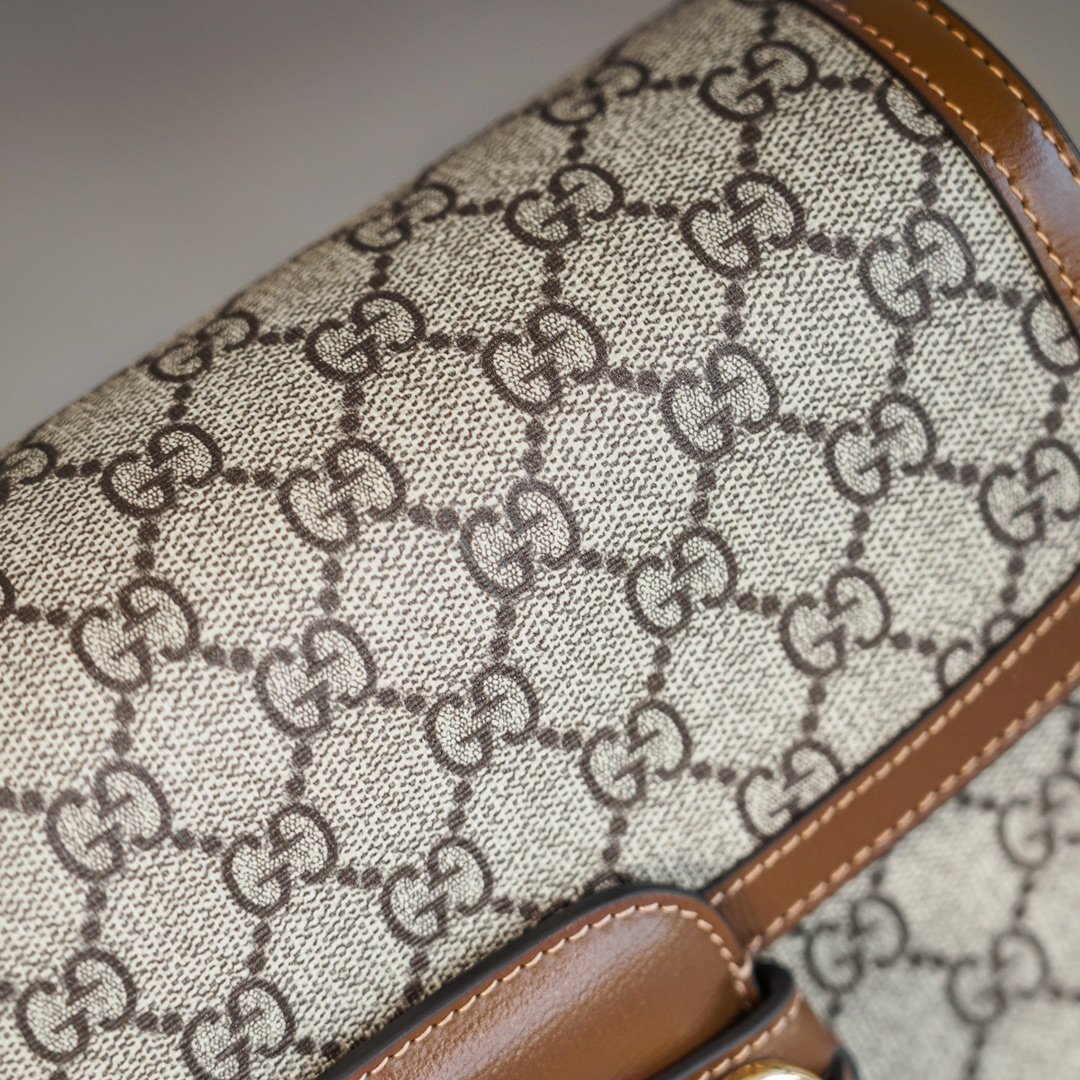 Horsebit 𝟏𝟗𝟓𝟓 Collection Small Handbag Oatmeal nnGG Supreme canvas is an iconic fabric of the brand, which has been interpreted in different color combinations as well as in modern and classic designs, and is featured in the new fashion collection of the "March of Love". n This horsebit 1955 handbag is interpreted in beige and white versions of the iconic fabric, artfully piped in the same color palette. Inspired by the 1930s, the canvas echoes the collection's stylish retro design concept. nSize: 25*18*8cmnModel No.: 602204