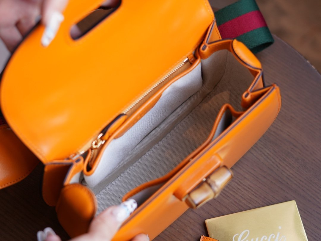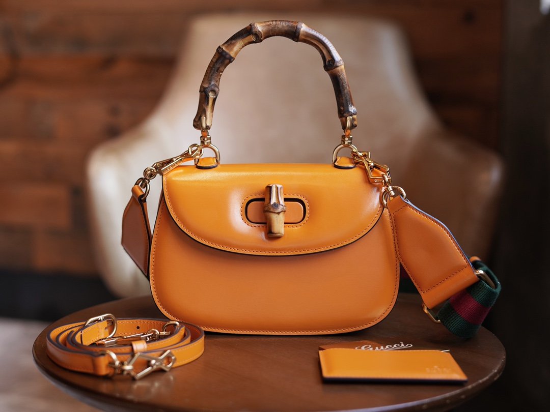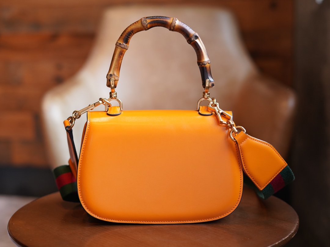 Bamboo Handbag Small Orange nn Bamboo symbolizes the legacy of living design. The bamboo handles on this handbag are bent and molded under the heat of a flame. This craftsmanship originated from Florentine craftsmen in the post-World War II era. Crafted in orange leather with a detachable webbing shoulder strap, the n bag can be carried on the shoulder or in the hand. The "Aria" series focuses on practical and versatile design, utilizing a variety of wearable ways to interpret the timeless classic items. nSize: 21*15*7cmn🔍: 6757970511 $280.00