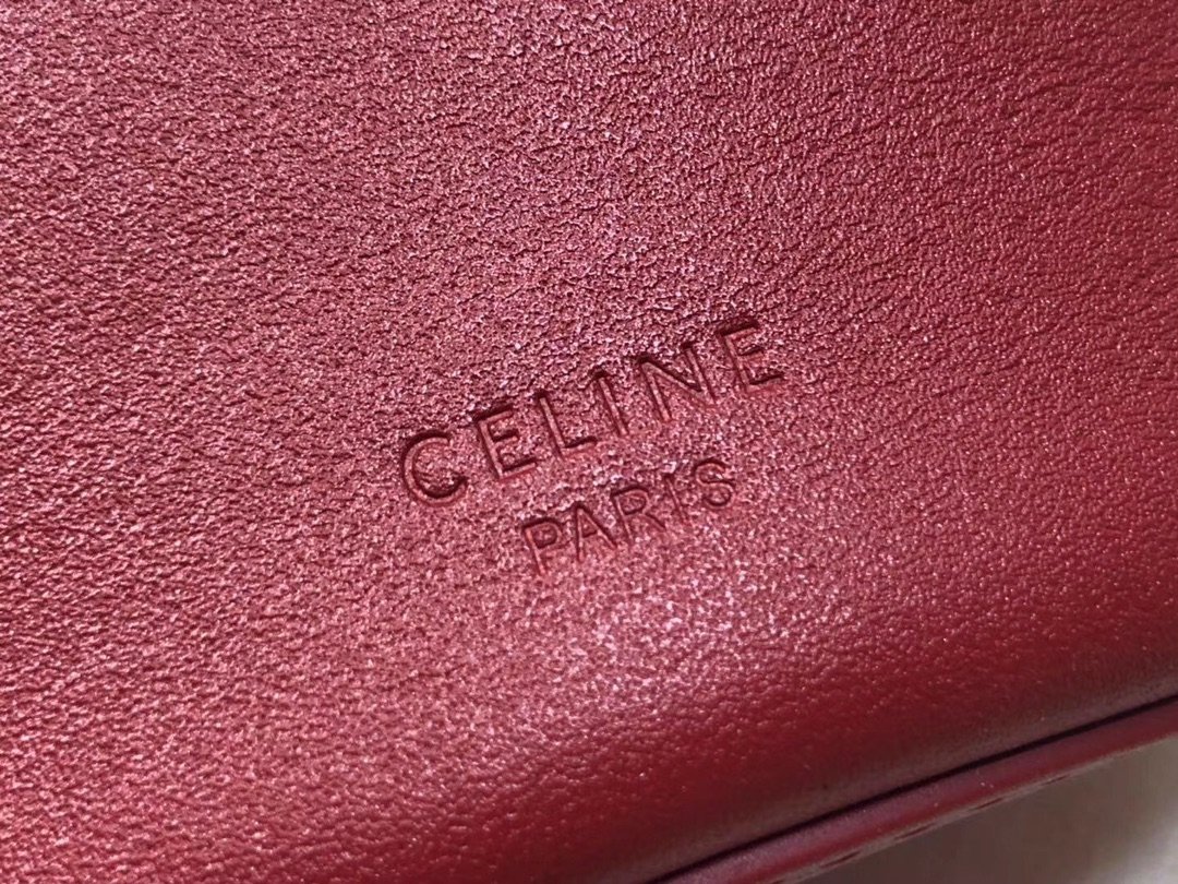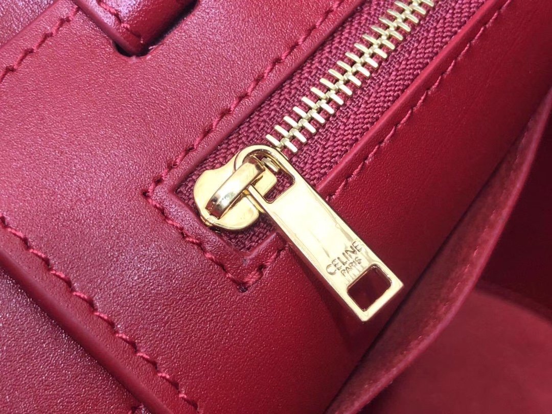 CELINE BELT MINI mini grained calf leather handbag with 1 leather handle, 1 detachable shoulder strap and 1 zipped pocket on the outside back. This handbag features two closure options: top flap and zipper. nSize 11 X 9 X 7 inches (28 X 23 X 17 cm)n100% Calfskin leathern100% Calfskin leather liningnGolden metal hardwarenShoulder or handheldnMagnetic snap top flap closure and top flap lower zipper closurenInterior double flat pocketsnBack exterior flat pocketnDetachable leather shoulder strap 14 inches (36 cm)nTote handle 4 inches (9 cm)n Protective foot studsn No. 175523 P1050