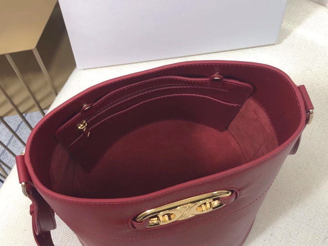 Home BAGS CELINE BUCKET MAILLON TRIOMPHE FALL/WINTER 2020 SATIN COW LEATHER BUCKET BAG n10 X 11 X 9 INCHES (25 X 29 X 22 cm)nCow Leather 001298nLining : Sheep LeathernShoulder CarryingnInterior Zippered PocketnAdjustable Shoulder Strap Length 17 INCHES (43 cm)nNo. 193043