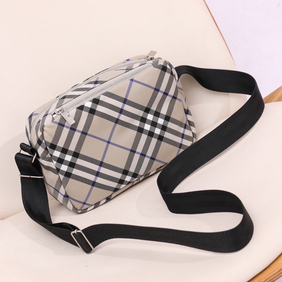 Burberry’s latest camera bag 🆕 is a unique and innovative check fabric embellished with the brand’s knightly warhorse. Lined in the same fabric with a B-zipper. Ultra lightweight and perfect for summer travel Lightweight and versatile Large capacity (25X12X18)017148