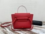 CELINE BELT MINI mini grained calf leather handbag with 1 leather handle, 1 detachable shoulder strap and 1 zipped pocket on the outside back. This handbag features two closure options: top flap and zipper. nSize 11 X 9 X 7 inches (28 X 23 X 17 cm)n100% Calfskin leathern100% Calfskin leather liningnGolden metal hardwarenShoulder or handheldnMagnetic snap top flap closure and top flap lower zipper closurenInterior double flat pocketsnBack exterior flat pocketnDetachable leather shoulder strap 14 inches (36 cm)nTote handle 4 inches (9 cm)n Protective foot studsn No. 175523 p1050
