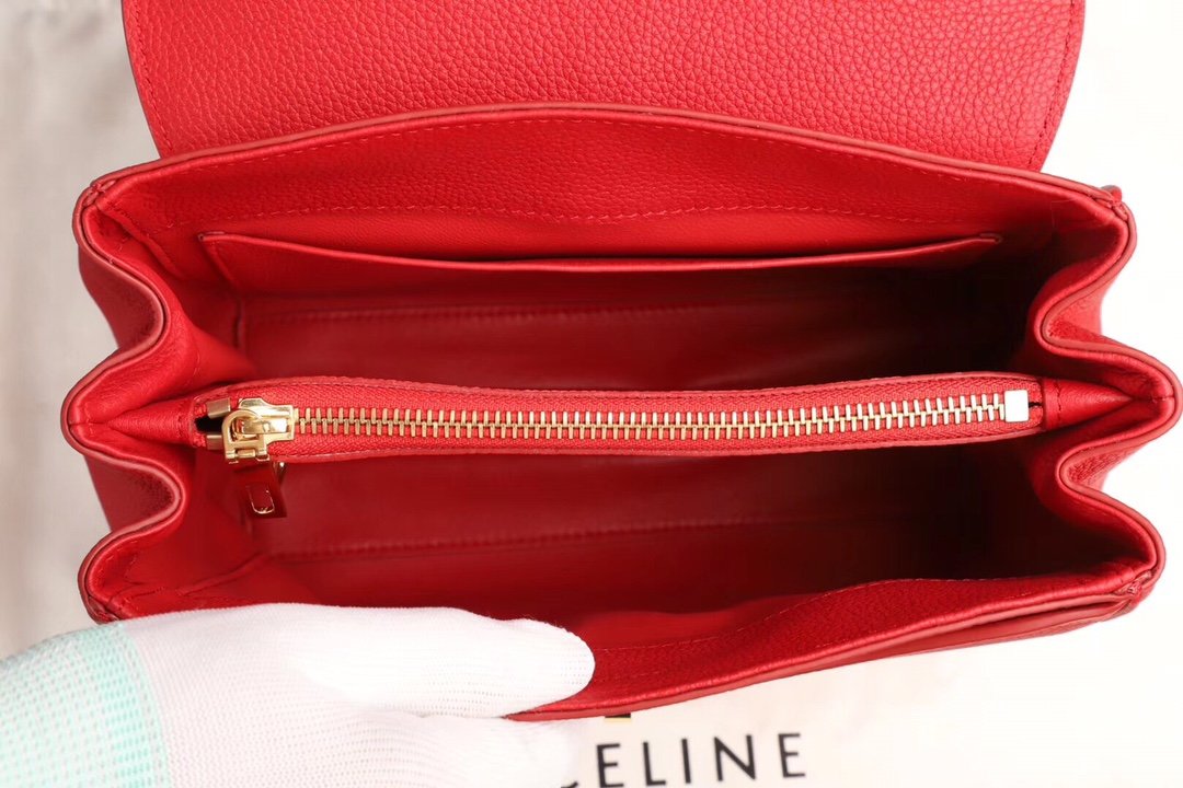 Home BAGS CELINE CELIN.E] 16#bag New Designer New Design Collection ~ Lychee Pattern ❤️ 100% Genuine leather with gold-tone metal parts, 100% outside cowhide with lambskin lining, brass locking clasp. 2 interior compartments, inside center zipper pocket and inside flat pocket, outside flat pocket under the flap at the front. With detachable leather shoulder strap 46 cm long, handle 8.5 cm long and protective studs at the base! Size: 23 X 19 X 10.5cm No.: 187374 Small p1200