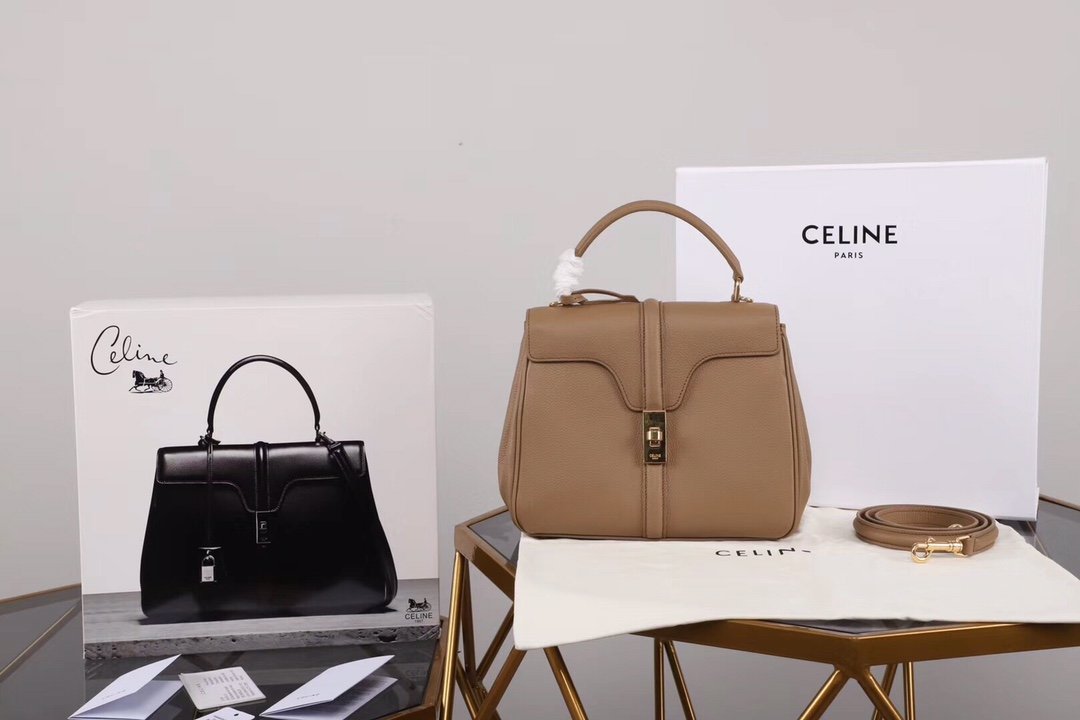 Home BAGS CELINE CELIN.E] 16#bag New Designer New Design Collection ~ Lychee Pattern ❤️ 100% Genuine leather with gold-tone metal parts, 100% outside cowhide with lambskin lining, brass locking clasp. 2 interior compartments, inside center zipper pocket and inside flat pocket, outside flat pocket under the flap at the front. With detachable leather shoulder strap 46 cm long, handle 8.5 cm long and protective studs at the base! Size: 23 X 19 X 10.5cm No.: 187374 Small p1200