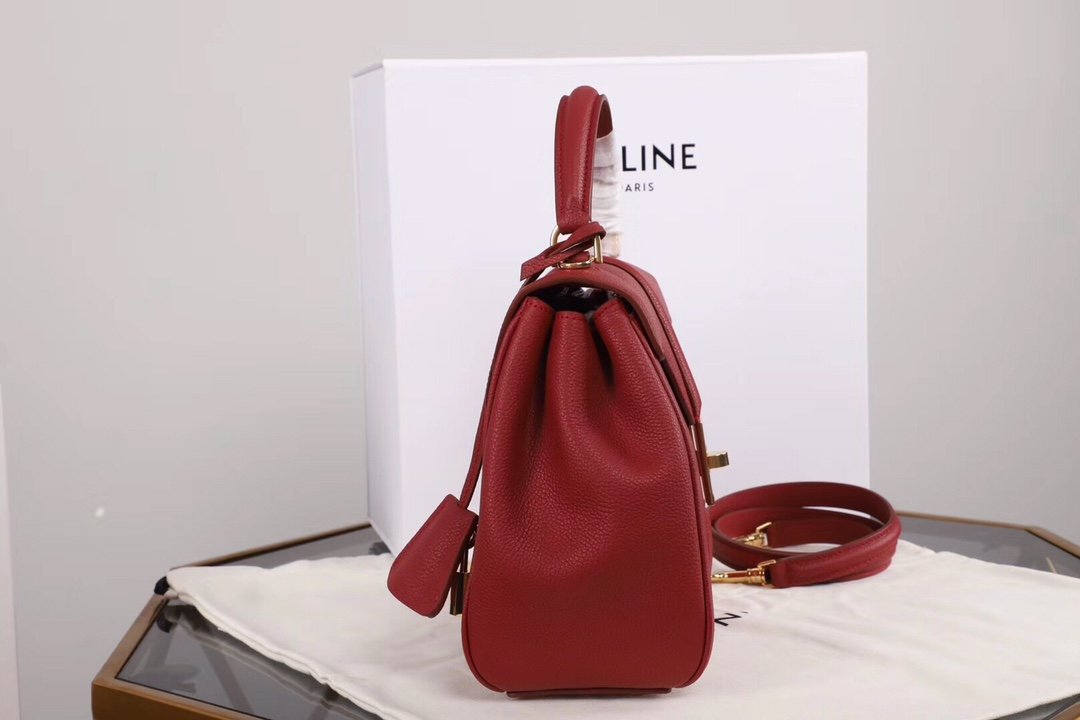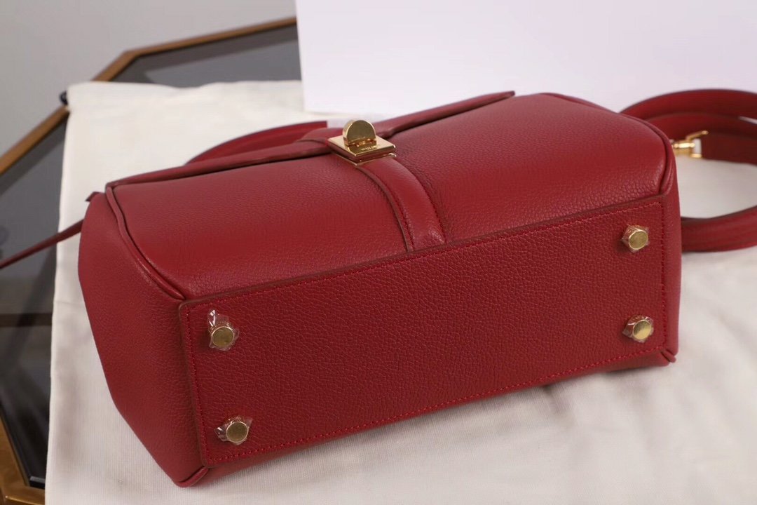 CELINE BELT MINI mini grained calf leather handbag with 1 leather handle, 1 detachable shoulder strap and 1 zipped pocket on the outside back. This handbag features two closure options: top flap and zipper. nSize 11 X 9 X 7 inches (28 X 23 X 17 cm)n100% Calfskin leathern100% Calfskin leather liningnGolden metal hardwarenShoulder or handheldnMagnetic snap top flap closure and top flap lower zipper closurenInterior double flat pocketsnBack exterior flat pocketnDetachable leather shoulder strap 14 inches (36 cm)nTote handle 4 inches (9 cm)n Protective foot studsn No. 175523 p1050