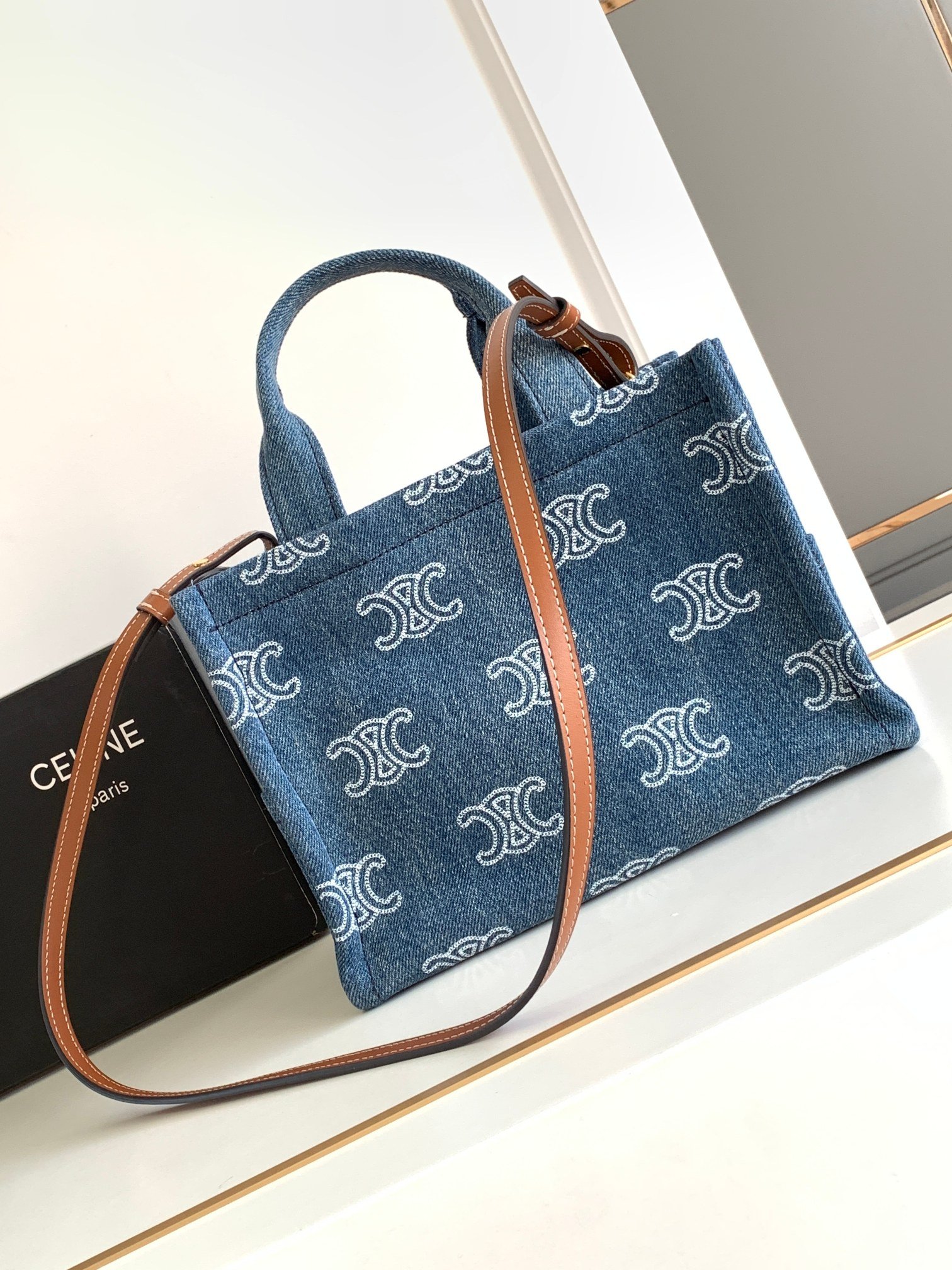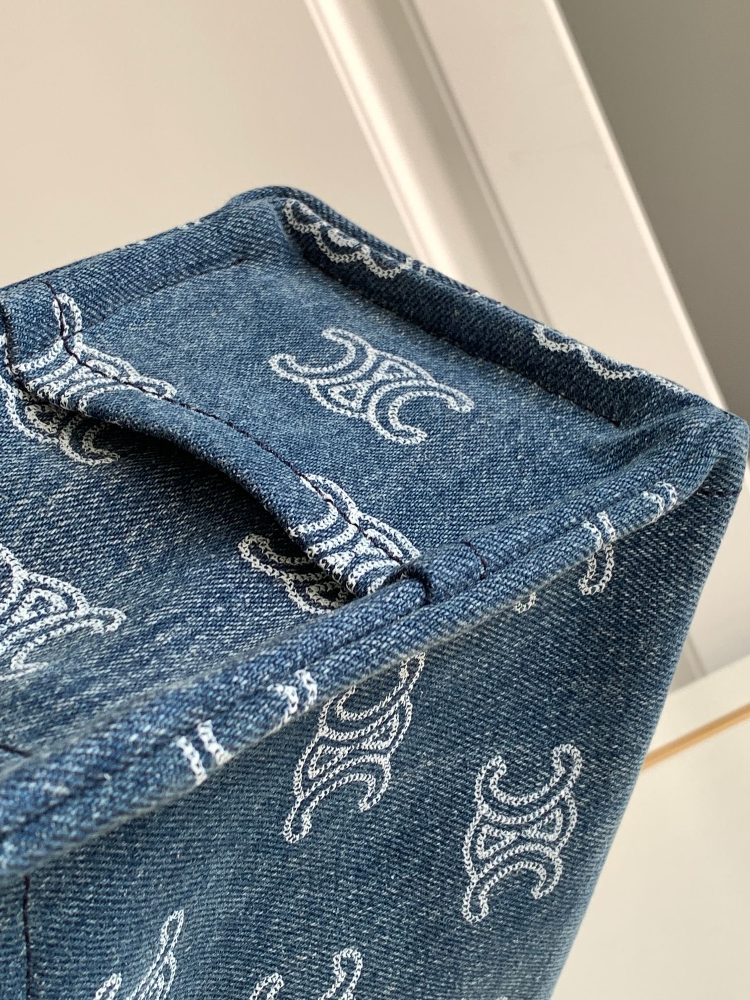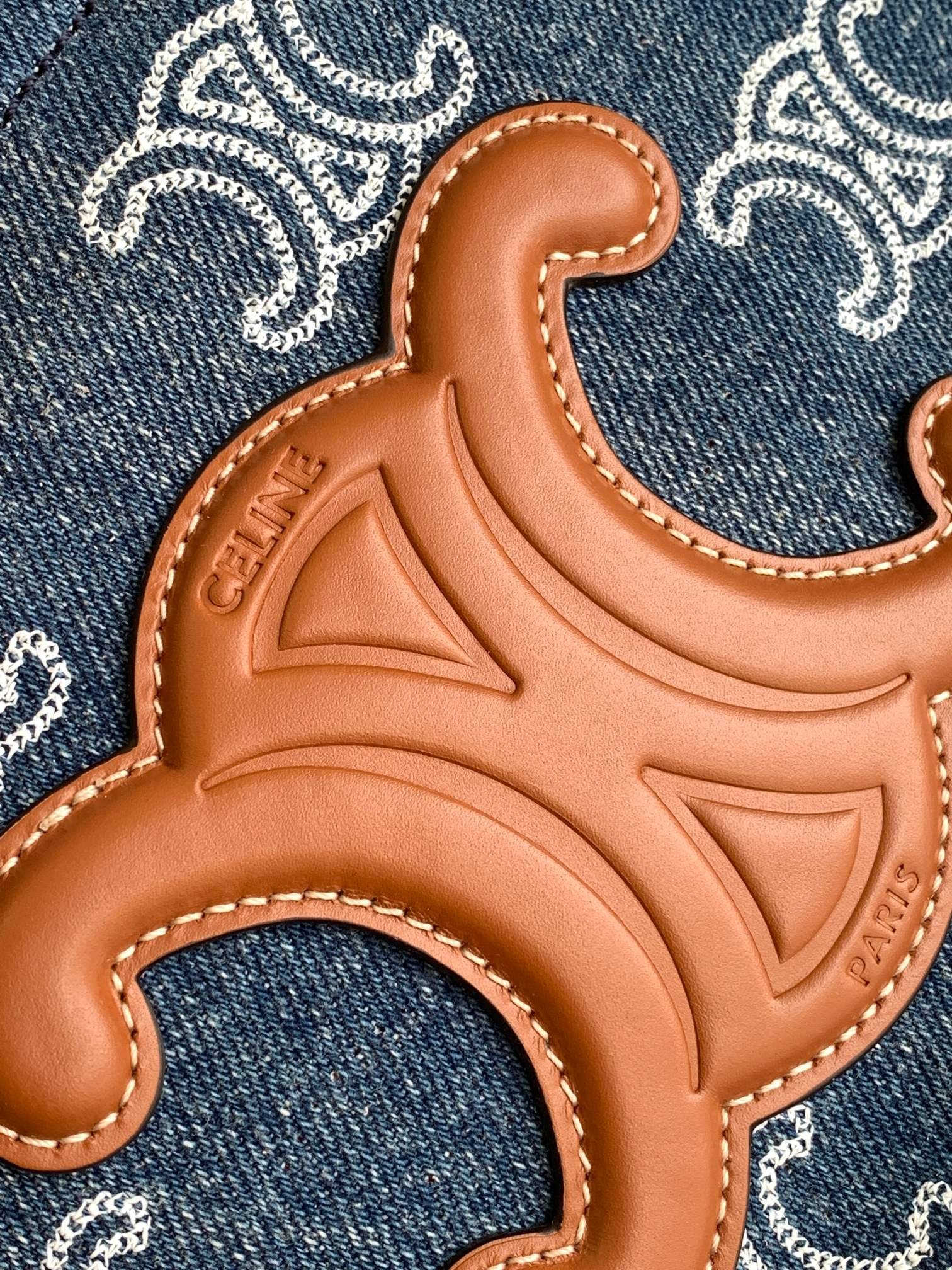 CELIN-E 23s Summer|CABAS THAIS💙 Denim Embroidery Fabric Cow Leather Handbag 168075