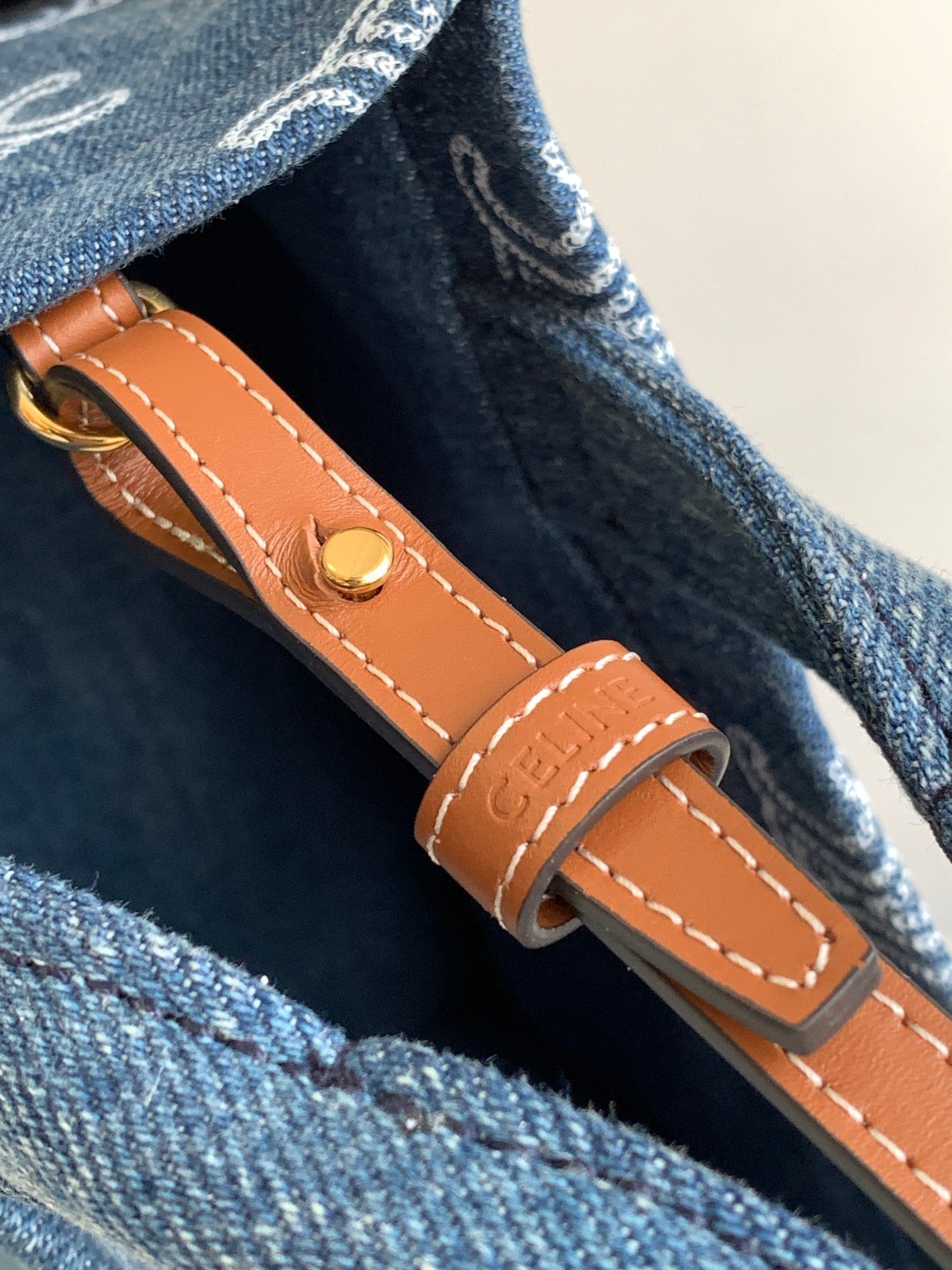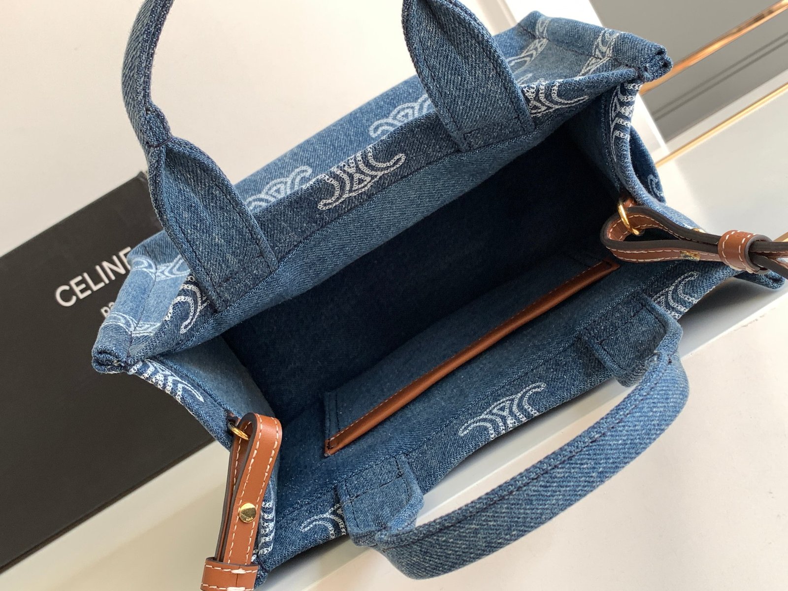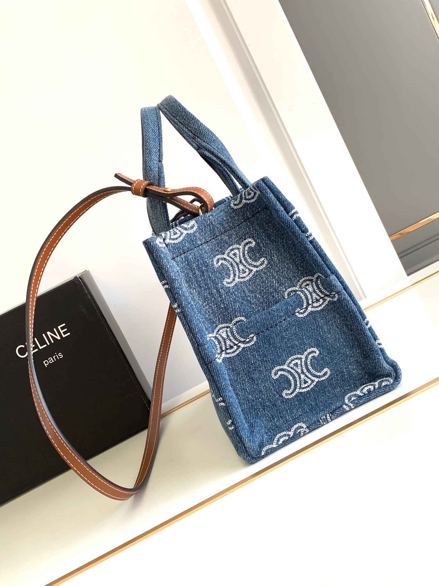 CELIN-E 23s Summer|CABAS THAIS💙 Denim Embroidery Fabric Cow Leather Handbag 168075