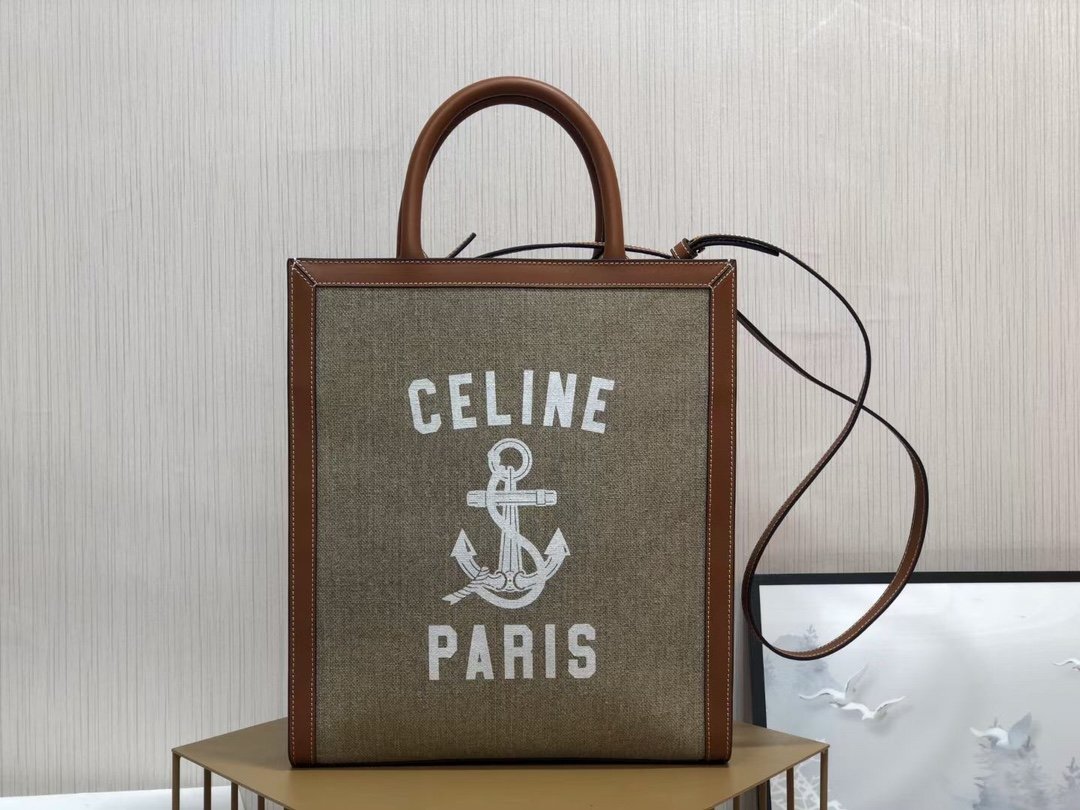 CELINE CABAS Small Anchor Printed Jute Faux Leather and Cow Leather Vertical Handbag 🛍️ looks more fashionable and fashionable High-grade sense of full of tone can be shoulder slanting crossbody hand carry Casual concave styling on the body to bring their own aura The bag weighs very light Can hold a laptop Commuting is no problem Going out on the street can also be a date Pan he’s the right one 👍(🔍) (192082) Size: 28.5/33/8