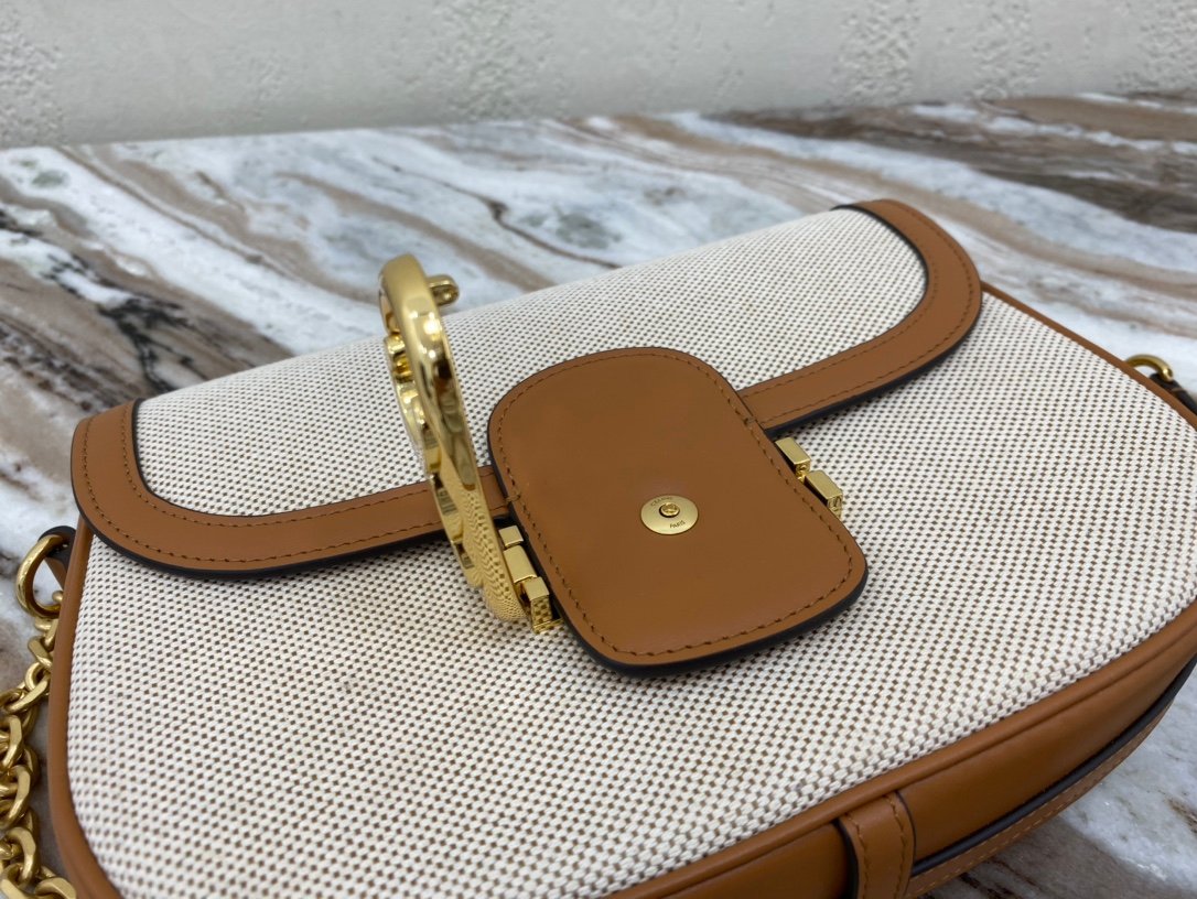 CELINE I MAILLON TRIOMPHE Medium Fabric and Cowhide Chain Handbag