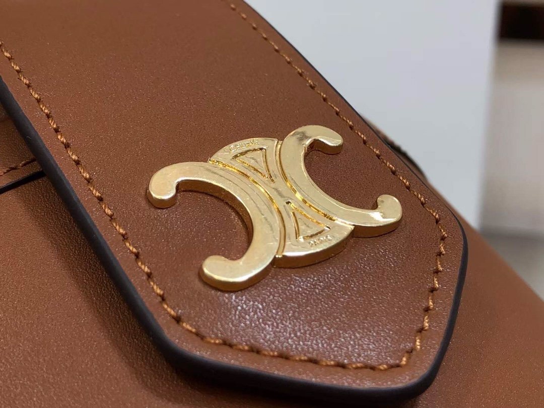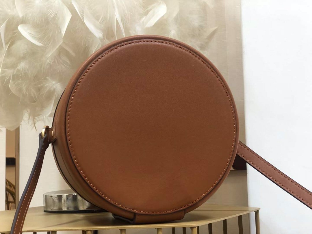 #CELINE TAMBOUR TRIOMPHE # 2020 FALL/WINTER NEW ROUND BOX BAG 🤎Cowhide Leather Medium Handbag