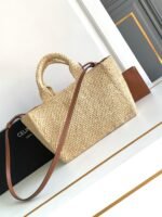 CELINE CLARA plant material and cow leather classic basket bag n24ss summer limited drawstring bucket bag šŸ’› using natural raffia hand-woven n ultra-fine craftsmanship full of texture fine details can be salted can be sweet French elegance, the ambience of the pull full šŸ‘— a variety of back can be carried can be cross-body ~ n compared to the previous straw bag feel more delicate material more soft summer essential ✨n note that all works are unique. The material is softer and must have in summer ✨nā€¼ļø Note: Handmade woven handbags, each piece of work is unique. Size and shape may vary slightly. n Natural plant materials, cowhide leather edges, unlined, gold finish, handheld, shoulder and crossbody, drawstring leather ties, 1 leather carry handle 9cm long, 1 detachable and adjustable shoulder strap: minimum length 47cm, maximum length 53cm 1680118nSize: 23 X 25 X 20cmnNo.: 117862FX8.04LU