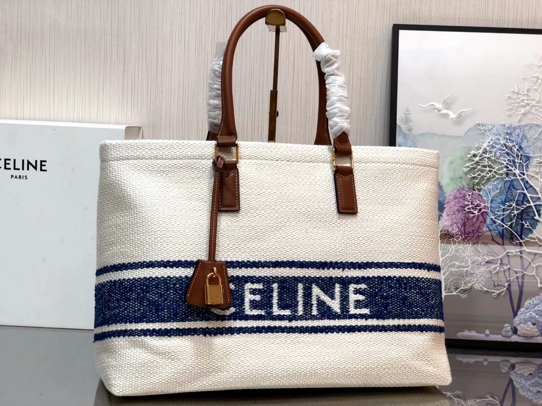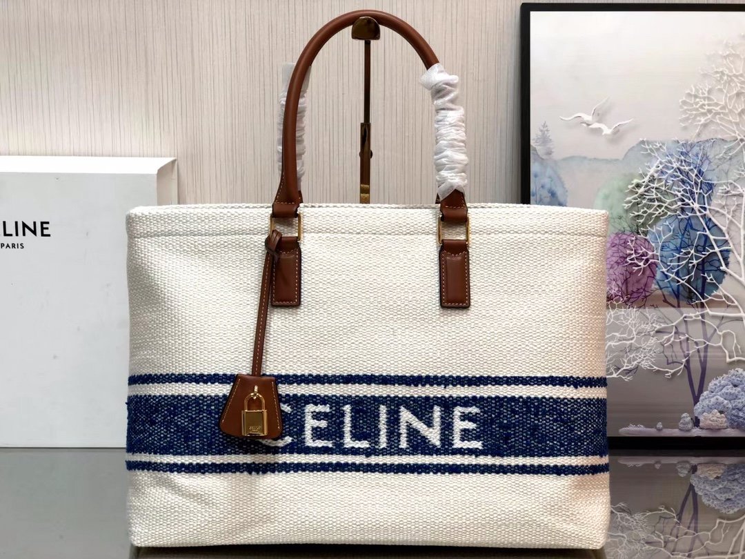 CELINE Tote Embroidered Woolen Fabric and Calfskin Leather Beach Bag ๐๏ธ The most suitable for the summer weave with warm caramel brown cowhide ๐๐พ As always, simple and atmospheric, silk-screened logo is particularly eye-catching, and other shopping bags, although there is no zipper but there is a large enough zipper inside pocket that Can be locked ๐ security no problem ๐ capacity is large, short trips or daily commute with a good choice ๐งก Size: 44/32/16 (๐190062) 780
