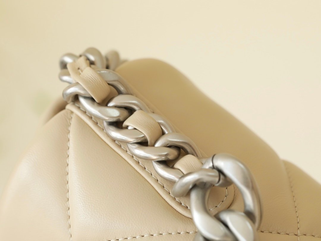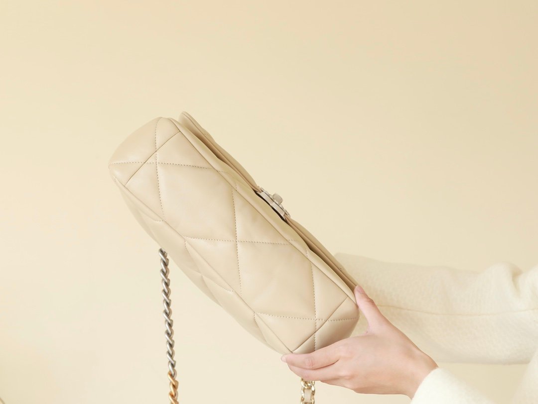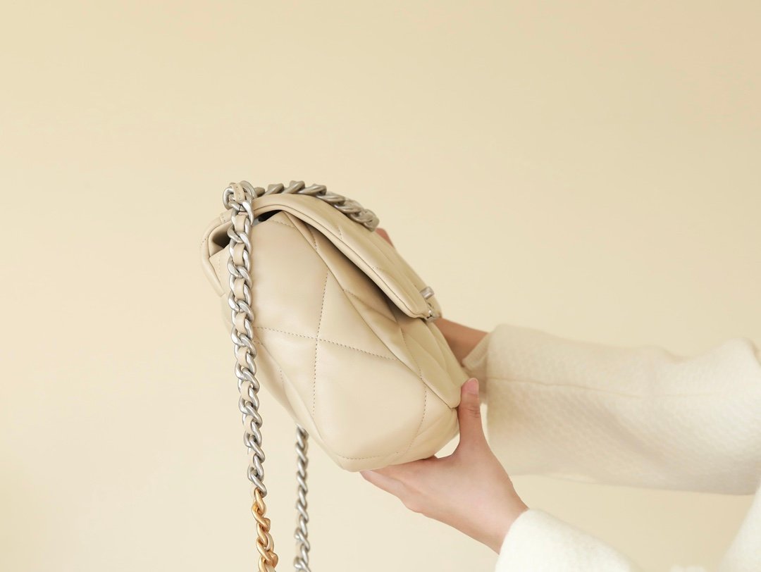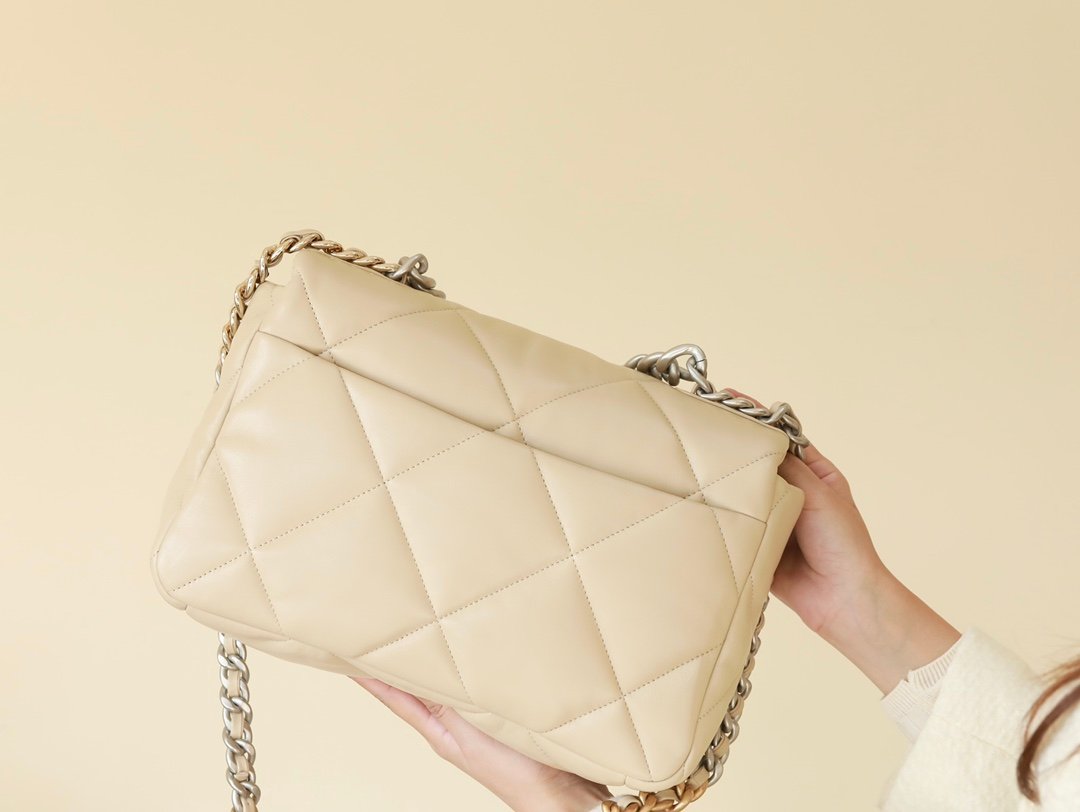 chanel 19 schoolbag tough to come n lambskin bring the soft sticky feel n free hands of the tool n duffel bag is really too good n capacity is really great n original leather punch duck n size: 26 * 22 * 16cm