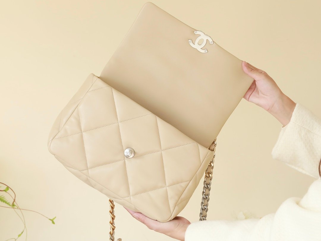 chanel 23k 19 underarm bag apricot n healing color n look is super gentle n underarm bag is still the mainstream trend in the market n who can miss 19 this underarm it n calf leather design how to wear are not afraid of n size: 23.5cm * 13.5 * 5.3cm