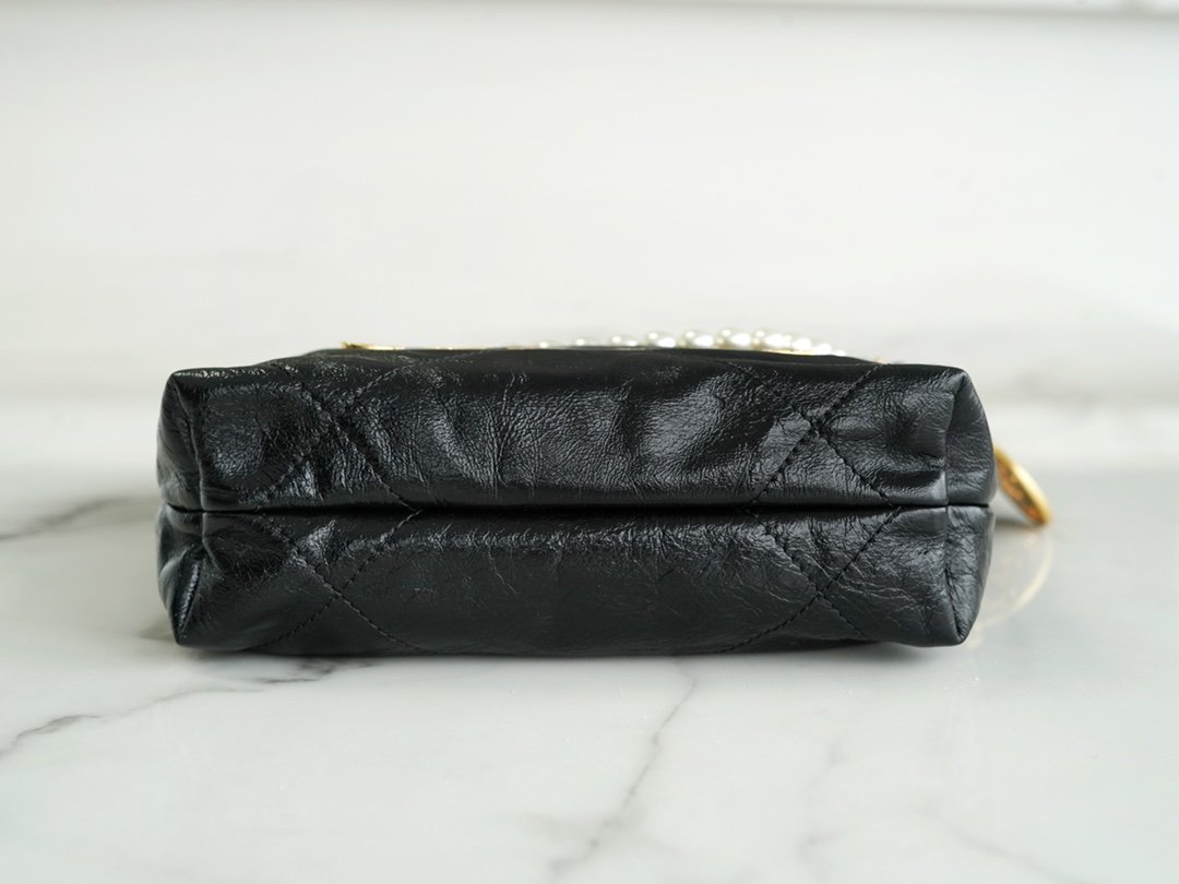 million kinds of expectations of the mini 22bag to come, shrinking version of the 22bag, looks extraordinarily playful and lovely, the use of wrinkled calfskin material, with the pearl more than a few minutes of gentle temperament! Small body large capacity, out of the street properly fried!