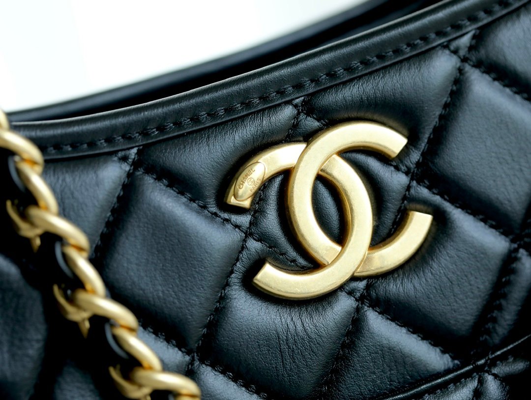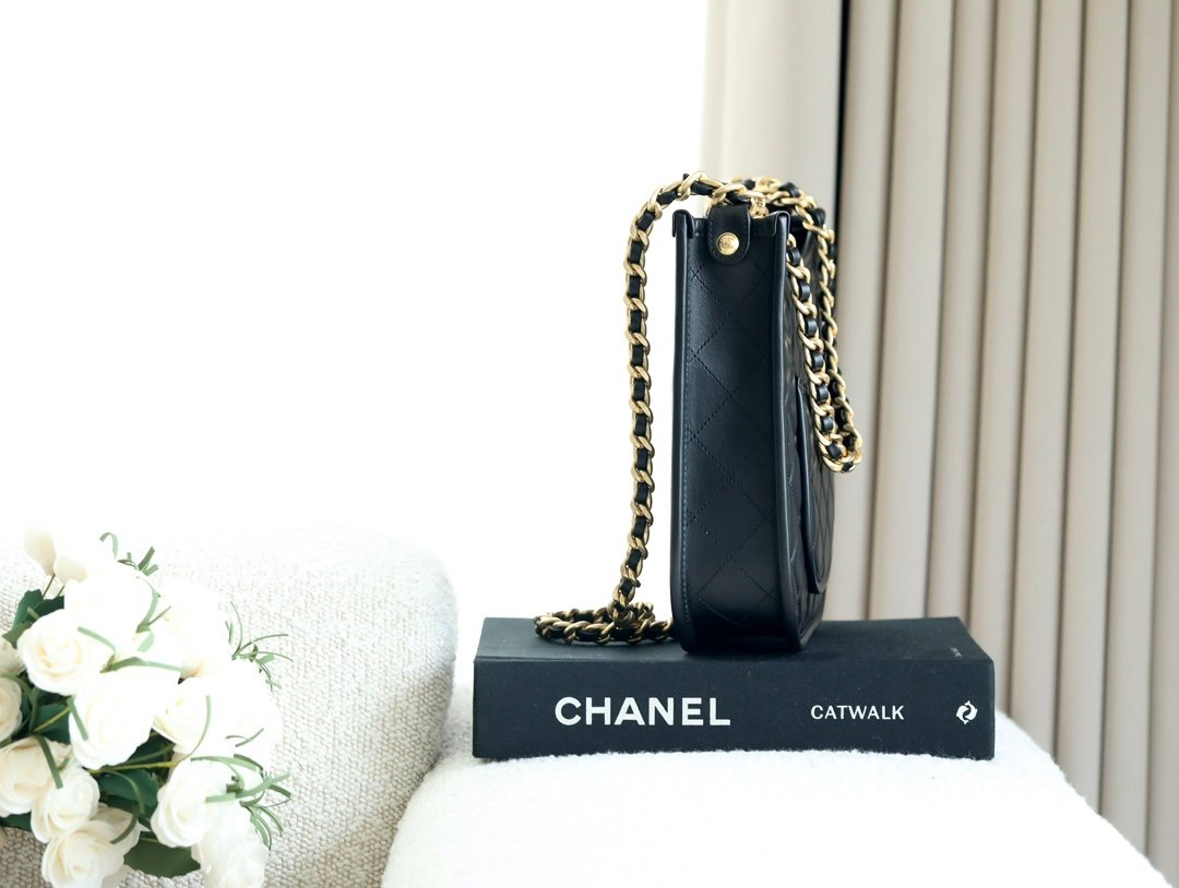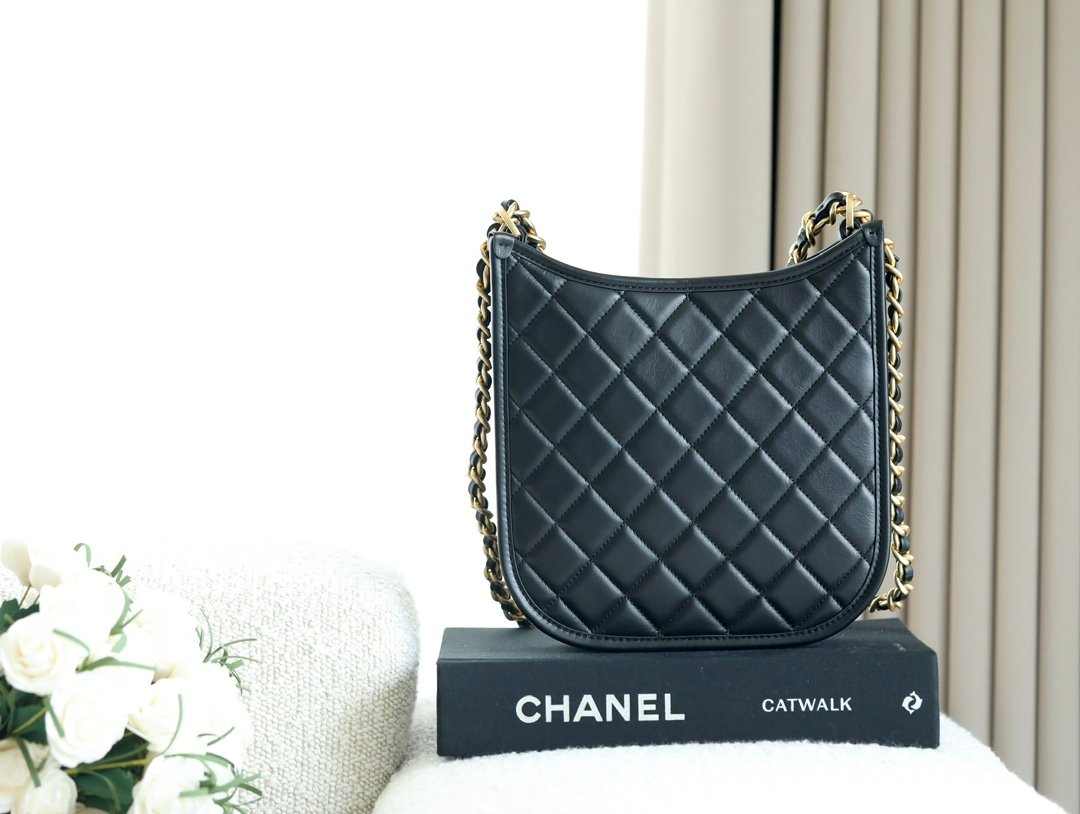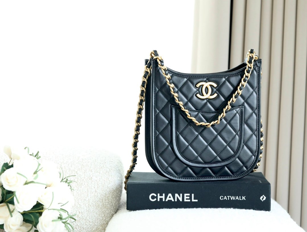 chanel hippie hobo crossbody 💕n2024 brand new dark horse is here n in the simple design with elements of chanel n make this bag is not in the ordinary n the summer free hands of the sharp tool n with the baby is really too convenient nn Hardware: Thick plated 𝟤 𝟦 𝗄 vintage gold n Leather: Original 𝖧𝖺𝖺𝗌 calf leathern Size: 𝟤0*24*6