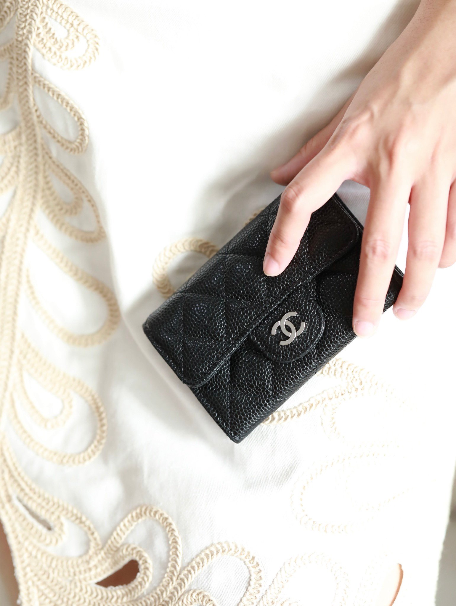 chanel Classic Flap Card Case n The flap of the card case really has too much capacity n It can be used as a card case as well as a business card holder n A card case with multiple uses n Classic hass Caviar Excellent abrasion resistance n The original hass to go a wave of n Different from the previous version n The new version comes with a two-tone color effect n Dimensions:7.5x11.3x2.1cm