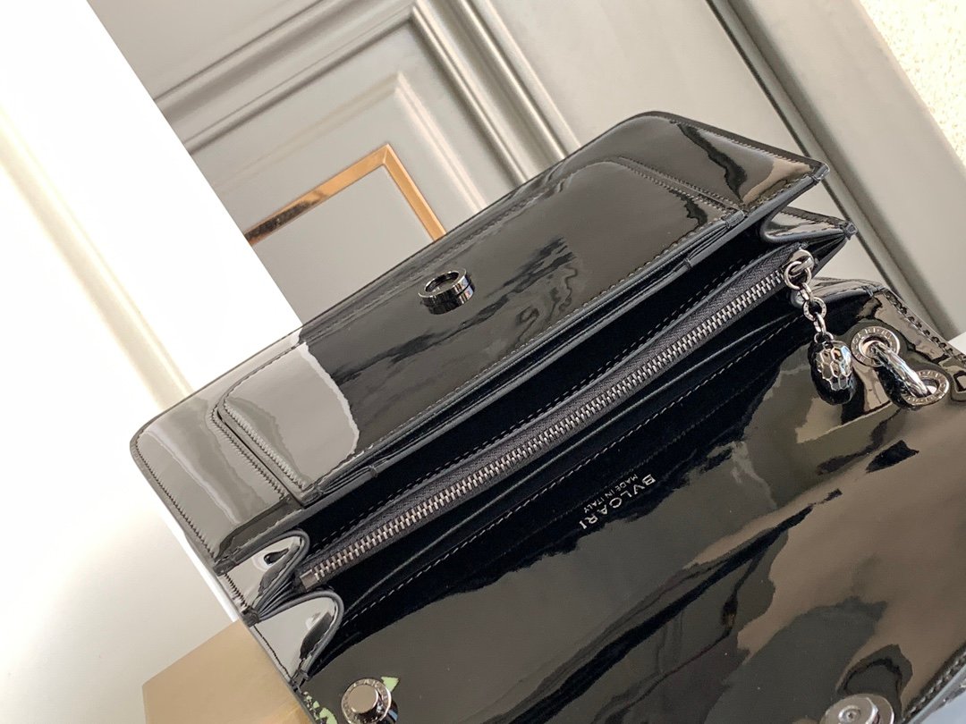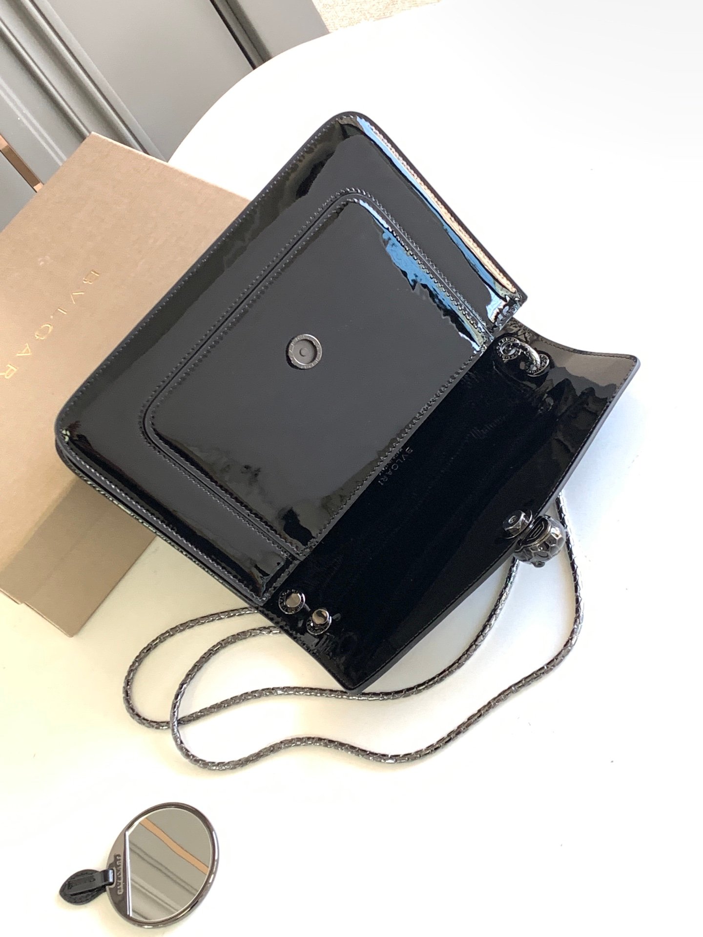 Chip Edition nBVLGA** 🎀SERPENTI FOREVER n EAST-WEST Collection Small Shoulder Bag n🔸 In glossy brushed black calf leather for a modern and even shine n Gunmetal colored enamel embellished with sensual black onyx stone eyes 👀 n The classic snake head magnetic clasp 🐍 is embellished with a seductive touch n🔹 with an adjustable detachable leather shoulder strap ✔️n featuring a single compartment,  1️⃣ front pocket,  1️⃣ back patchwork pocket,  1️⃣ interior quilted stitching pockets,  3️⃣ card slots,  1️⃣ personalized vanity mirror and B**GARI back decoration. Bvlgari metal logo n🔸 retains the practical size and classic elements n more compact and exquisite with large capacity n a variety of carrying methods to meet the daily needs 🙌n🔹 with an upgraded gift box 🎁nSize:22*15*4.5Cm⚠️ 2921030801