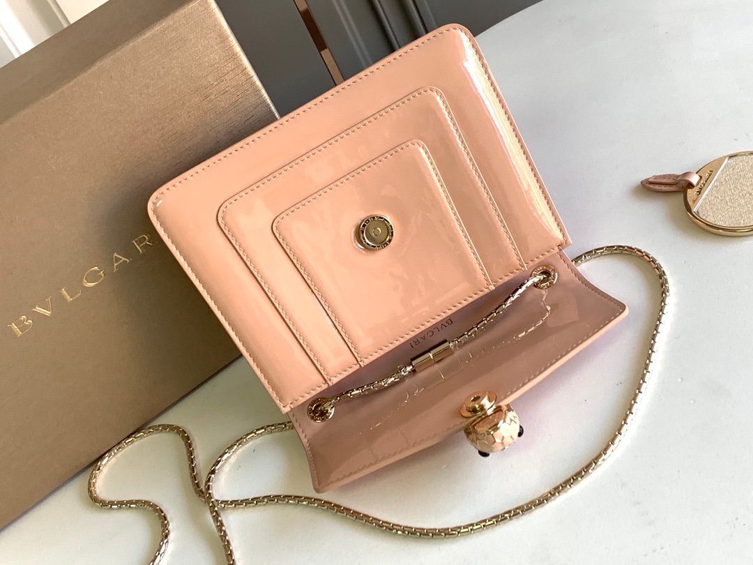 🔺Featuring a single compartment, a mirror pouch with personalized vanity mirror, and BULGARI metal logo on the reverse side