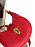 Chip Modeln NEW BVLGAR❤️SERPENTI ELLIPSE MINI CROSSBODY BAGn🔸This mini bag is made of fuchsia garnet red calf leather, with a soft, drum-turned calf leather center body, and smooth, textured sidesn With gold-plated brass hardware, the charming, classic snake-head clasp is decorated with black onyx scales in the center, embellished with red enamel Sensual eyes. n🔸 With a chain and leather shoulder strap, a leather belt with magnetic buckle closure and a practical top zipper, n🔸 The back features a flap pocket and the BVLGARI Bvlgari metal branding. The style is sleek and stylish, adding glamor and sophistication to the look. nComplete with an upgraded gold colored gift box 🎁nSize:13 X 8 X 3.5cm291665087